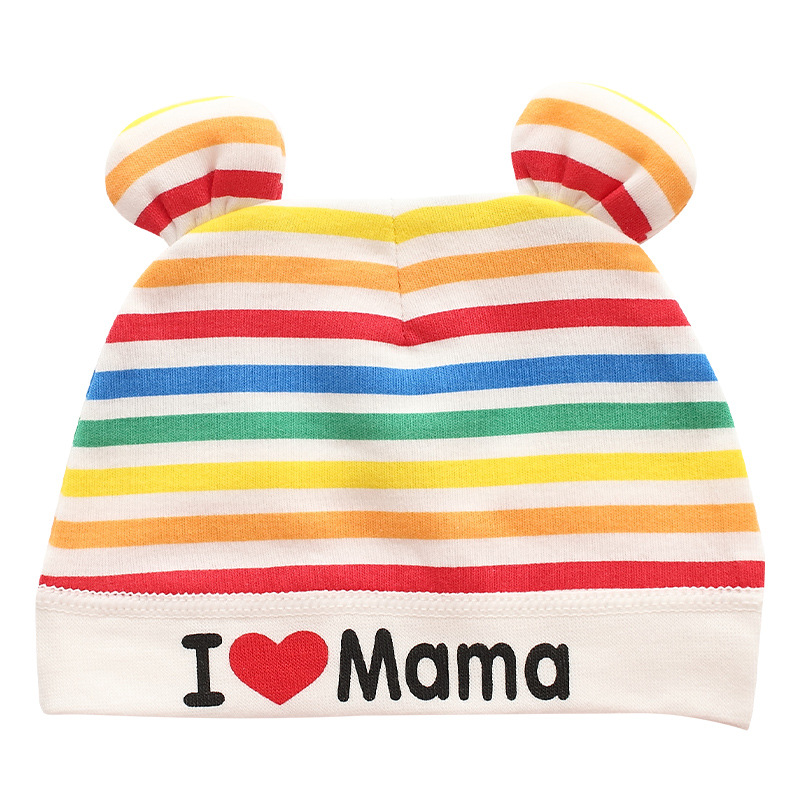 아기 모자 봄과 가을 태아 모자 무지개 줄무늬 곰 귀 신생아 가정 모자 평범한 머리카락 처마