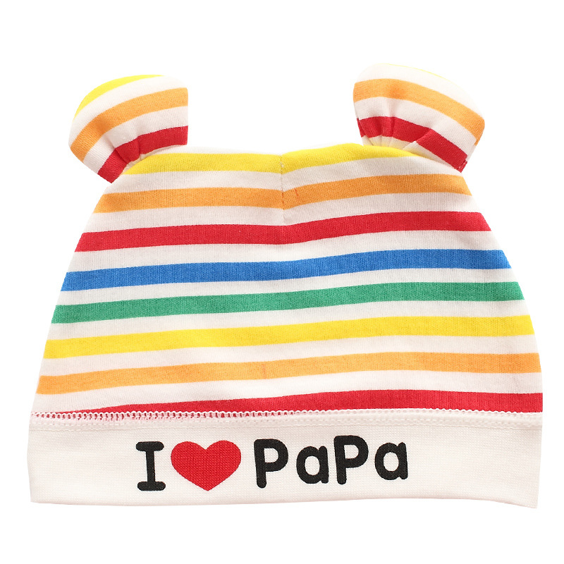 아기 모자 봄과 가을 태아 모자 무지개 줄무늬 곰 귀 신생아 가정 모자 평범한 머리카락 처마스토어 가기