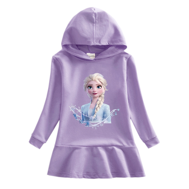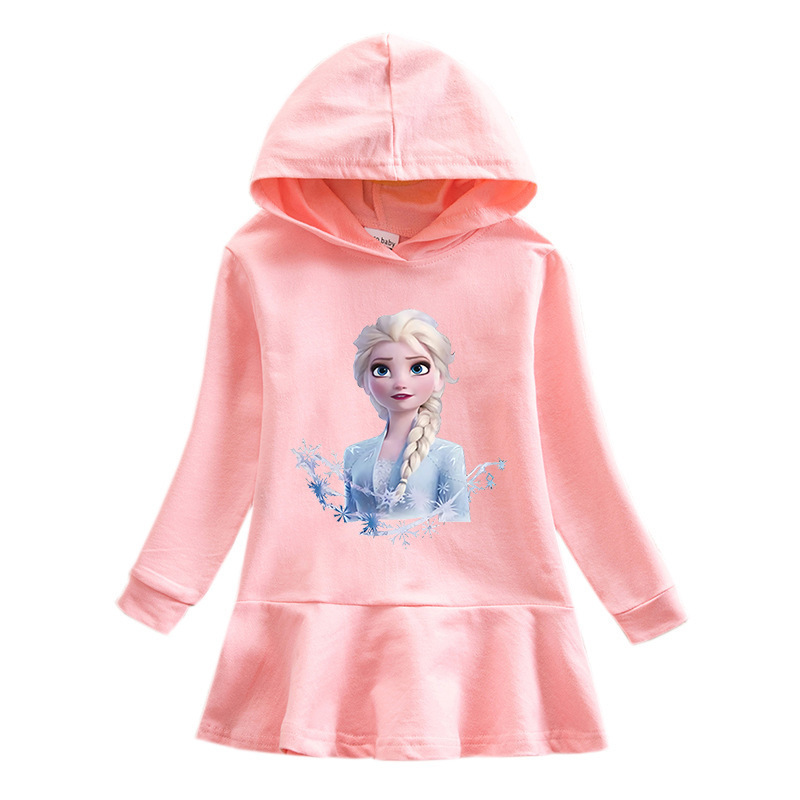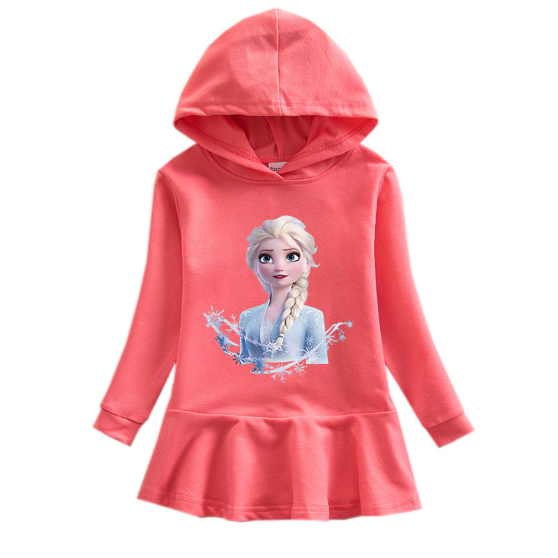 2023 봄과 가을 새로운 냉동 어린이 후드 스웨터 원피스 소녀 엘사 작은 공주 세련된 스커트스토어 가기
