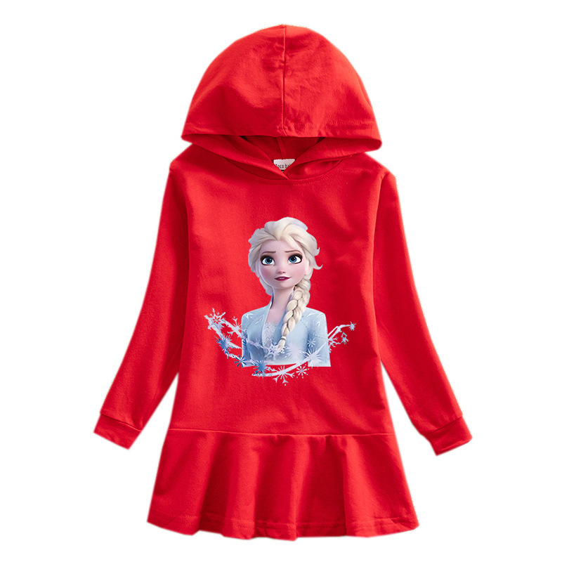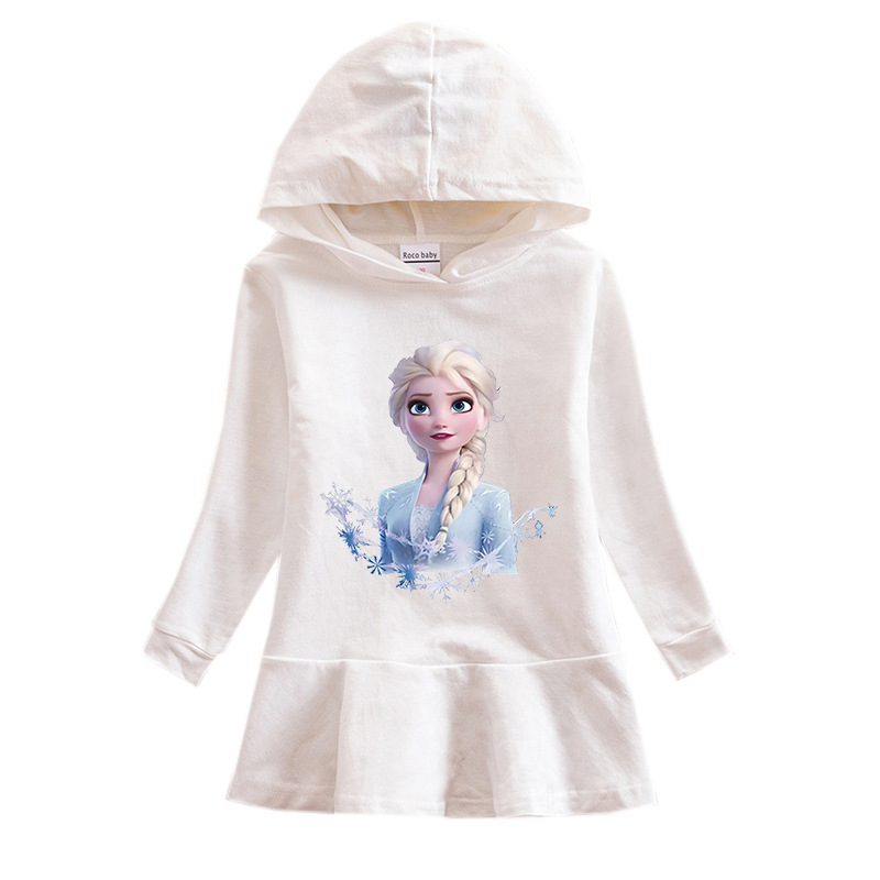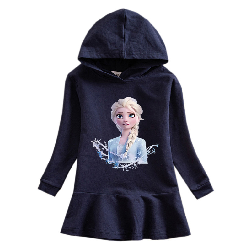 2023 봄과 가을 새로운 냉동 어린이 후드 스웨터 원피스 소녀 엘사 작은 공주 세련된 스커트