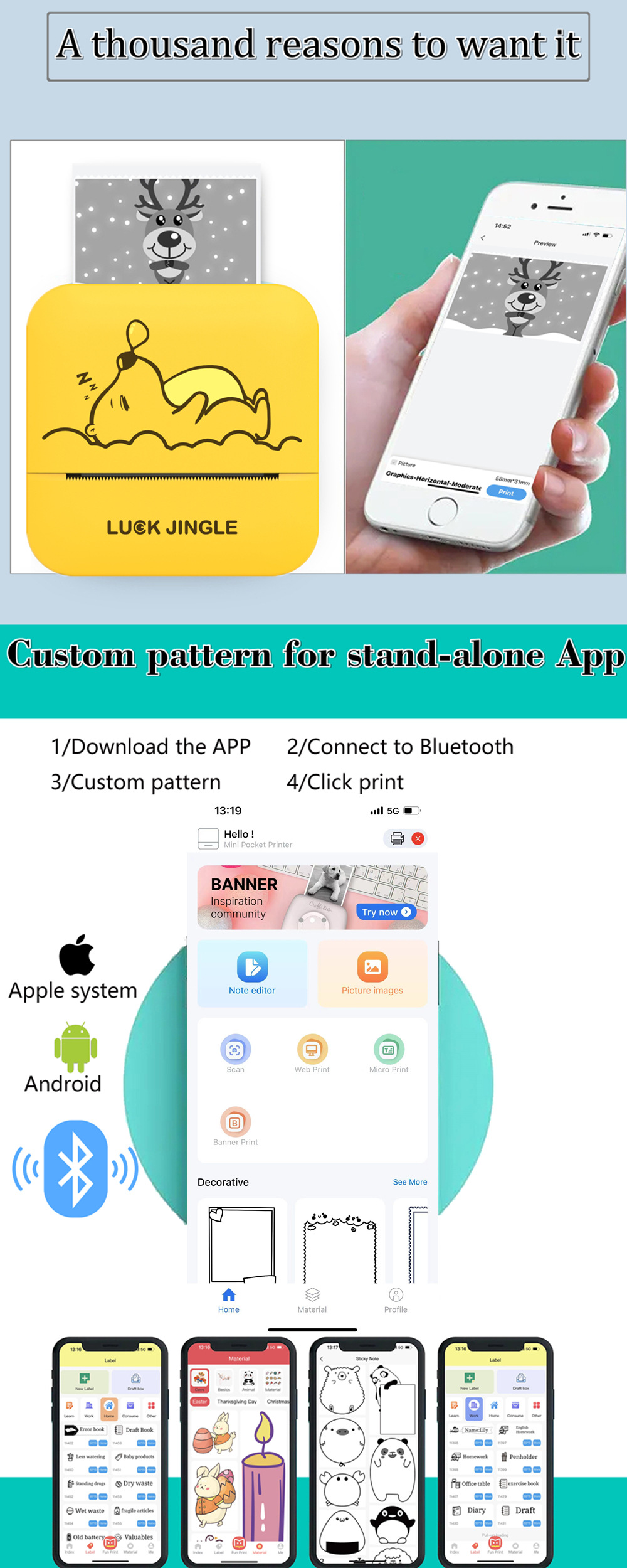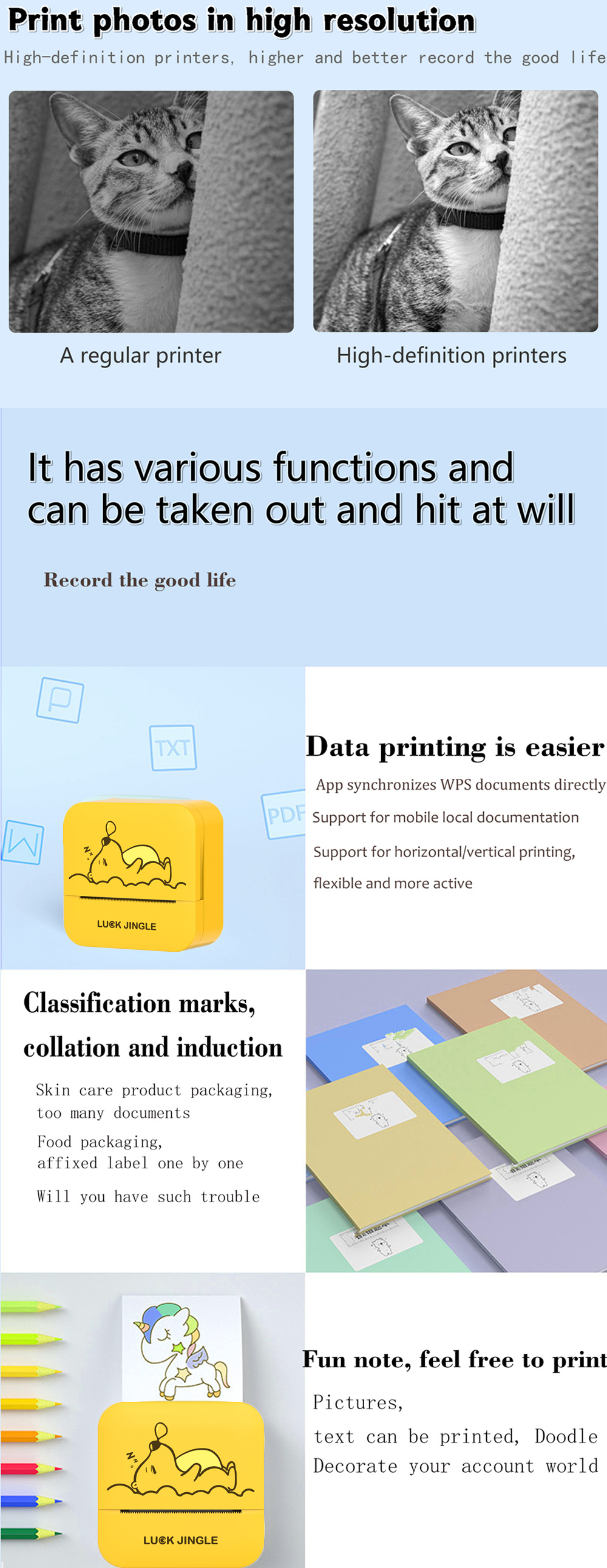 Xunchen AI 라벨 프린터 징글 동급생 잘못된 질문 소형 프린터 학생 미니 사진 메모 복사 유물스토어 가기