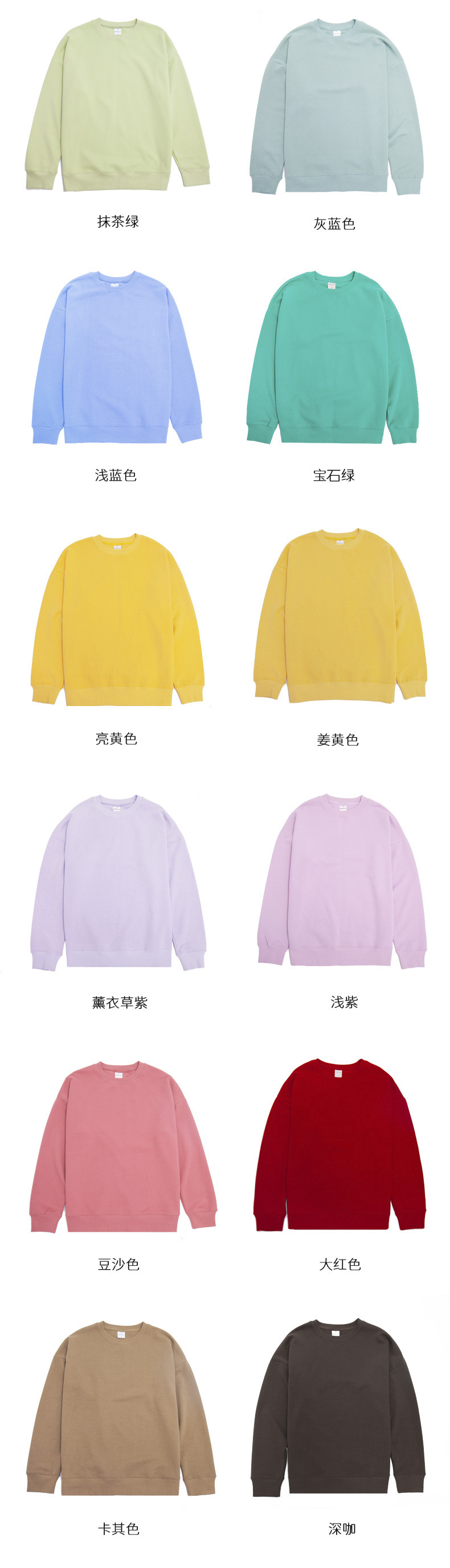가을 무거운 마카롱 솔리드 컬러 라운드 넥 스웨트 셔츠 남성용 코트 어깨 느슨한 캔디 컬러 스웨트 셔츠 여성용 인쇄 로고스토어 가기