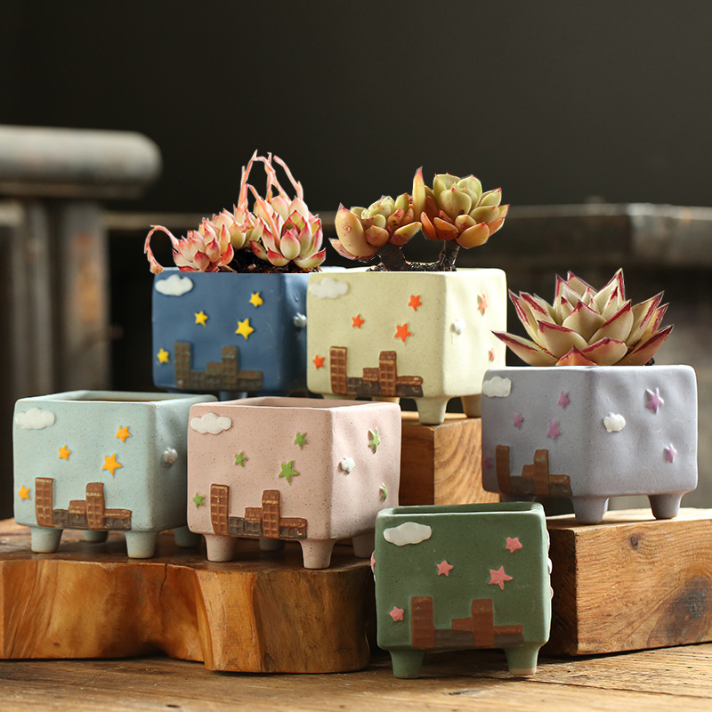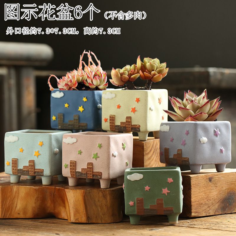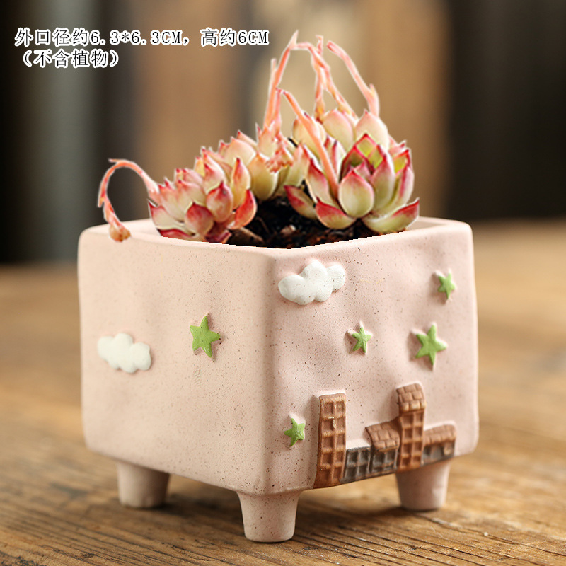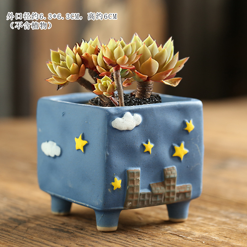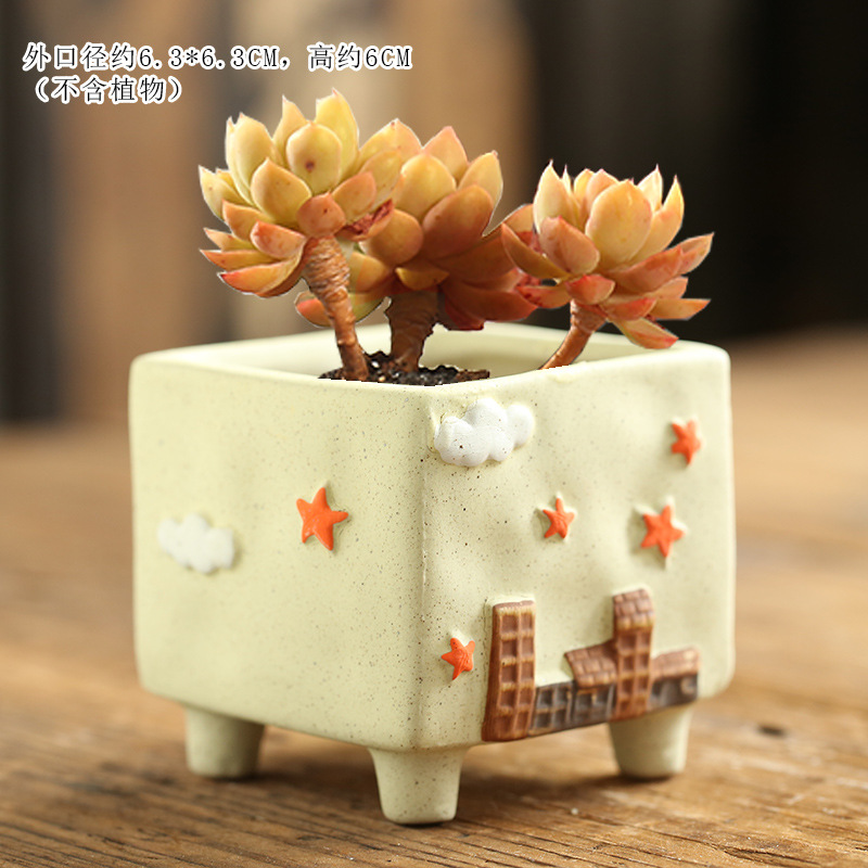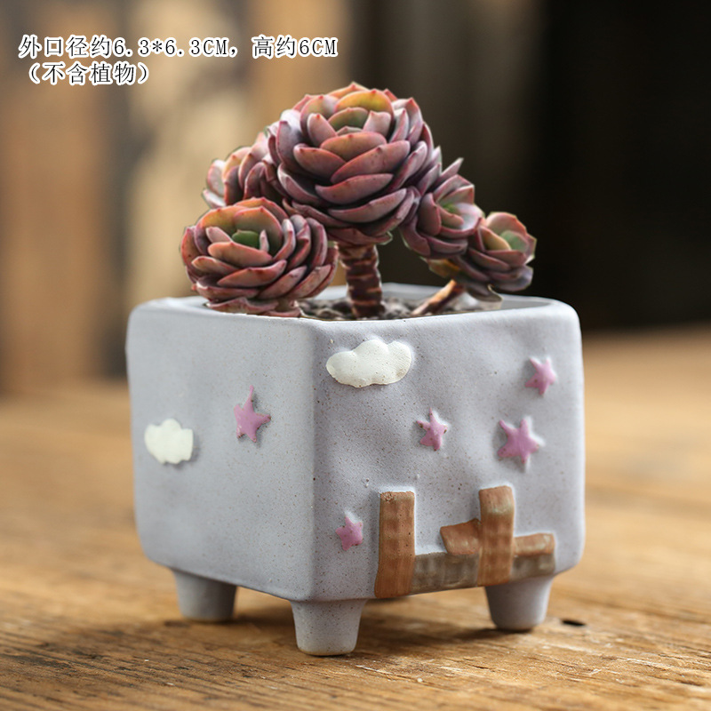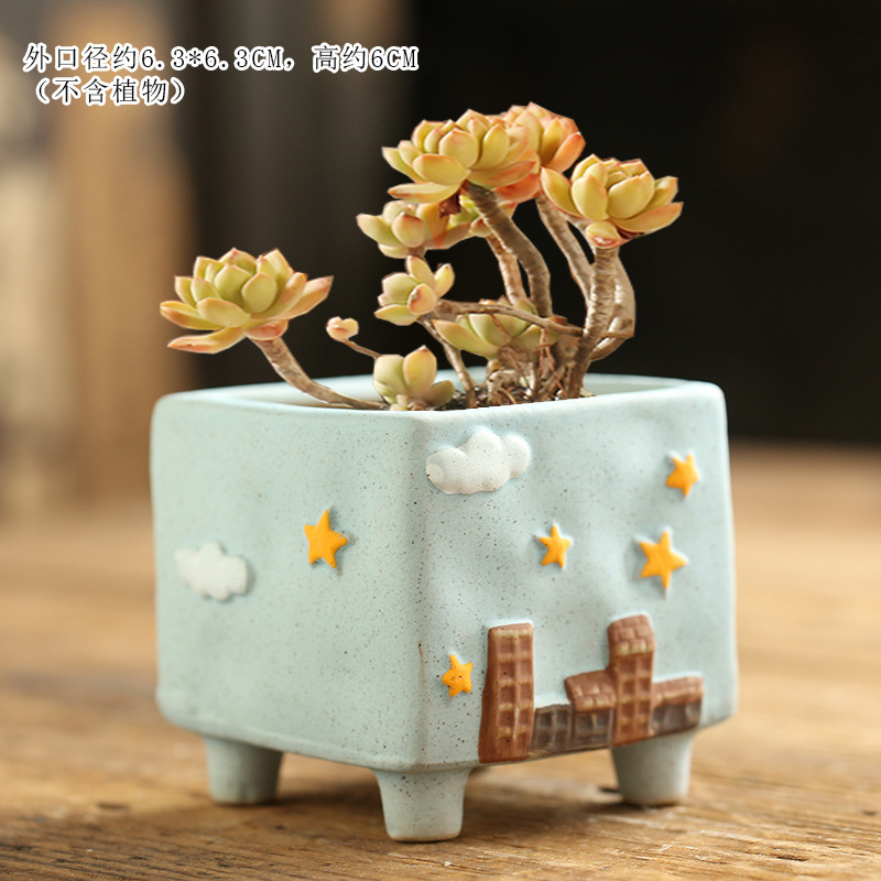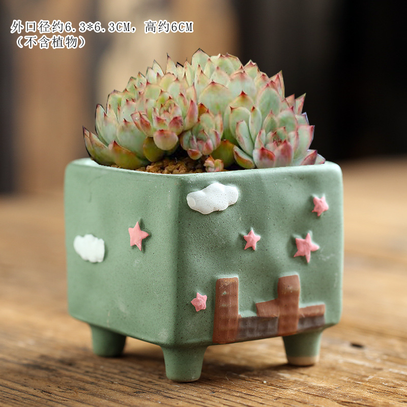 만화 크리 에이 티브 그린 손으로 그린 귀여운 통기성 고기 성격 다육 한 화분 세라믹 해양 손 색깔 거친 도자기 화분스토어 가기