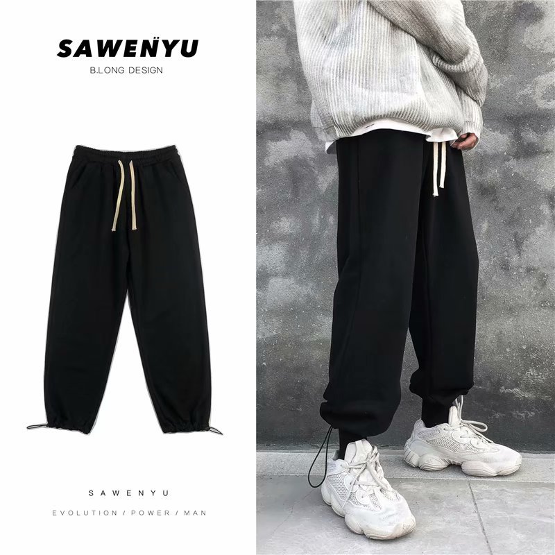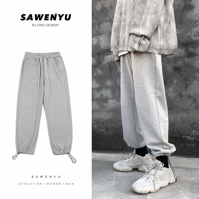 플러스 사이즈 캐주얼 바지 남자 봄 가을 한국 스타일 유행 학생 모든 매치 느슨한 단색 로프 그린 롱 스포츠 바지스토어 가기