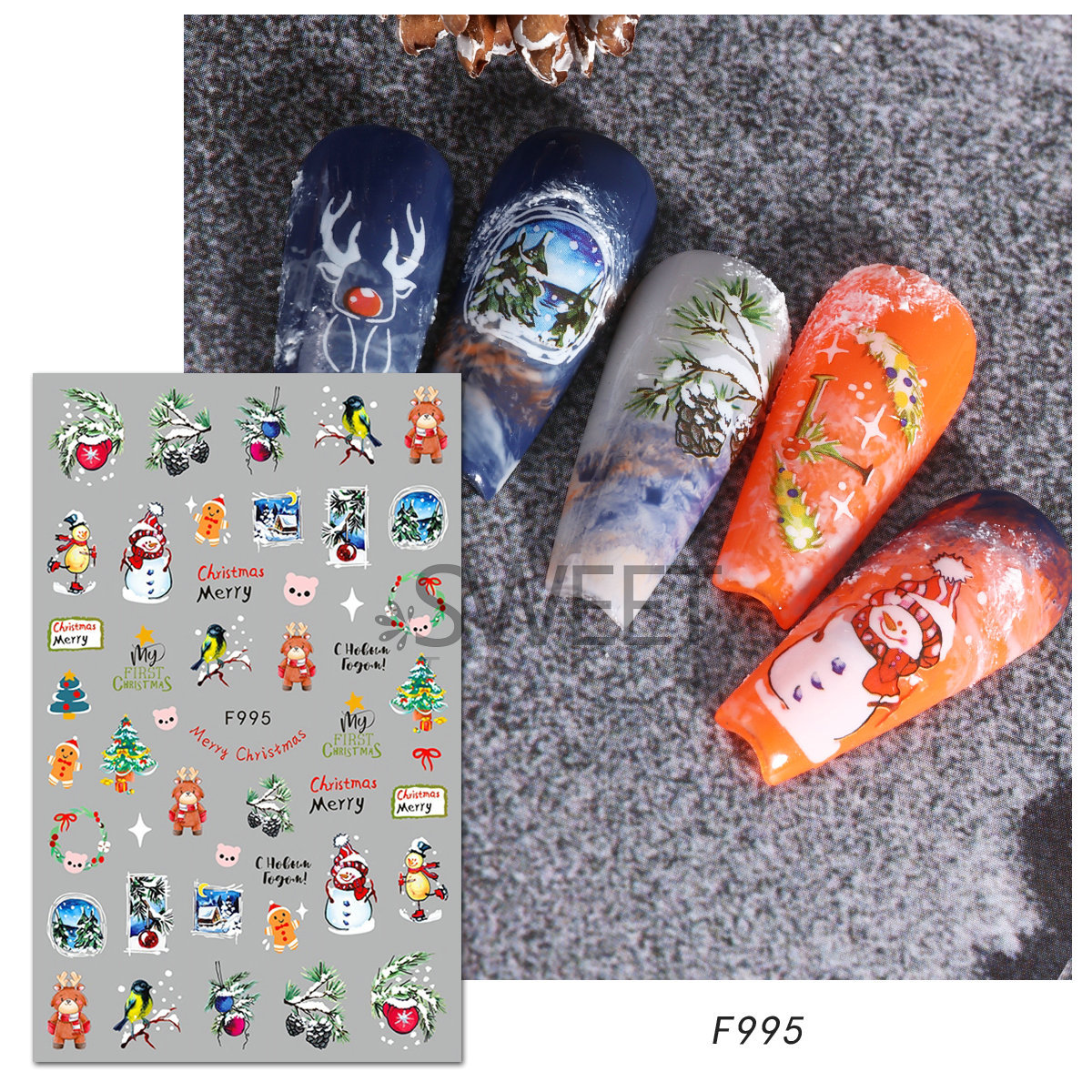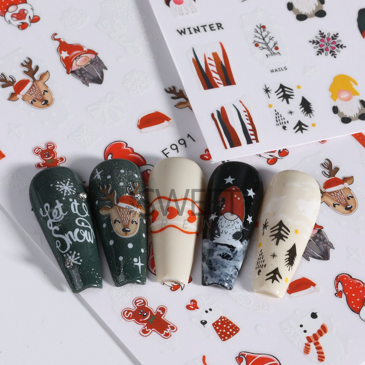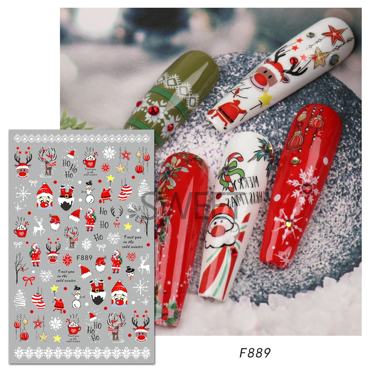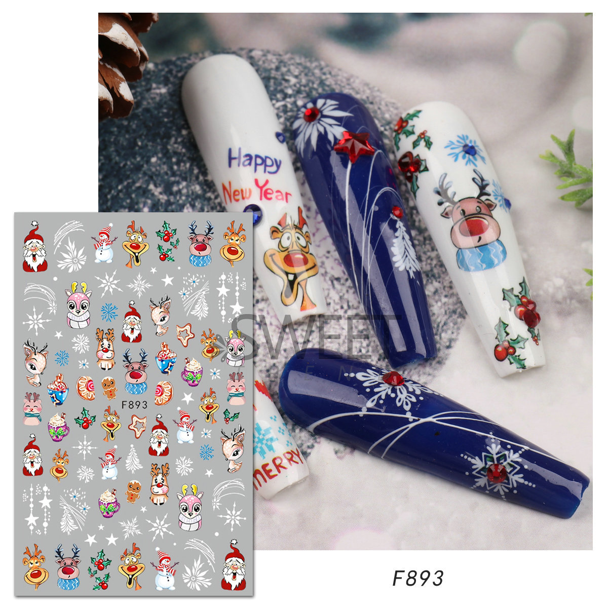 크로스 보더 새로운 네일 아트 스티커 크리스마스 눈송이 크리스마스 트리 노인 만화 비행 사슴 네일 스티커 데칼
