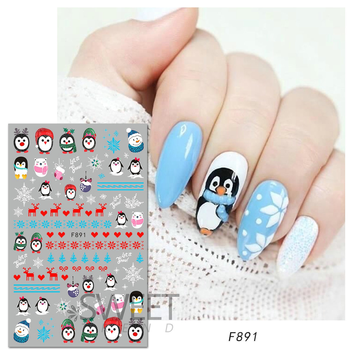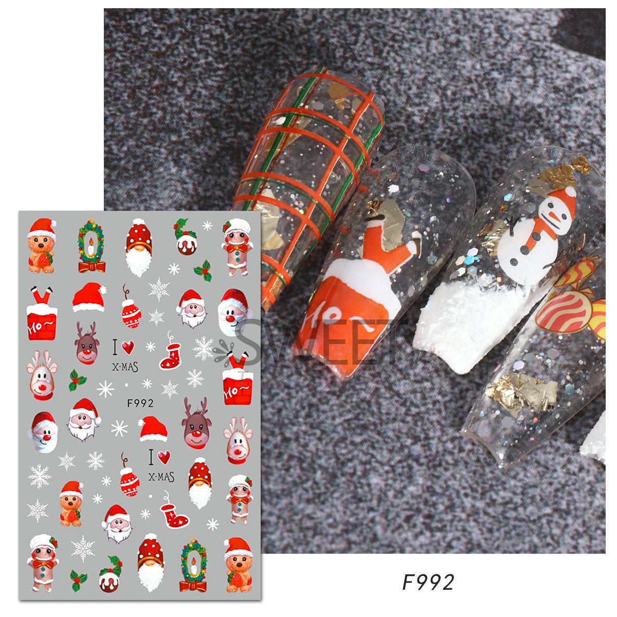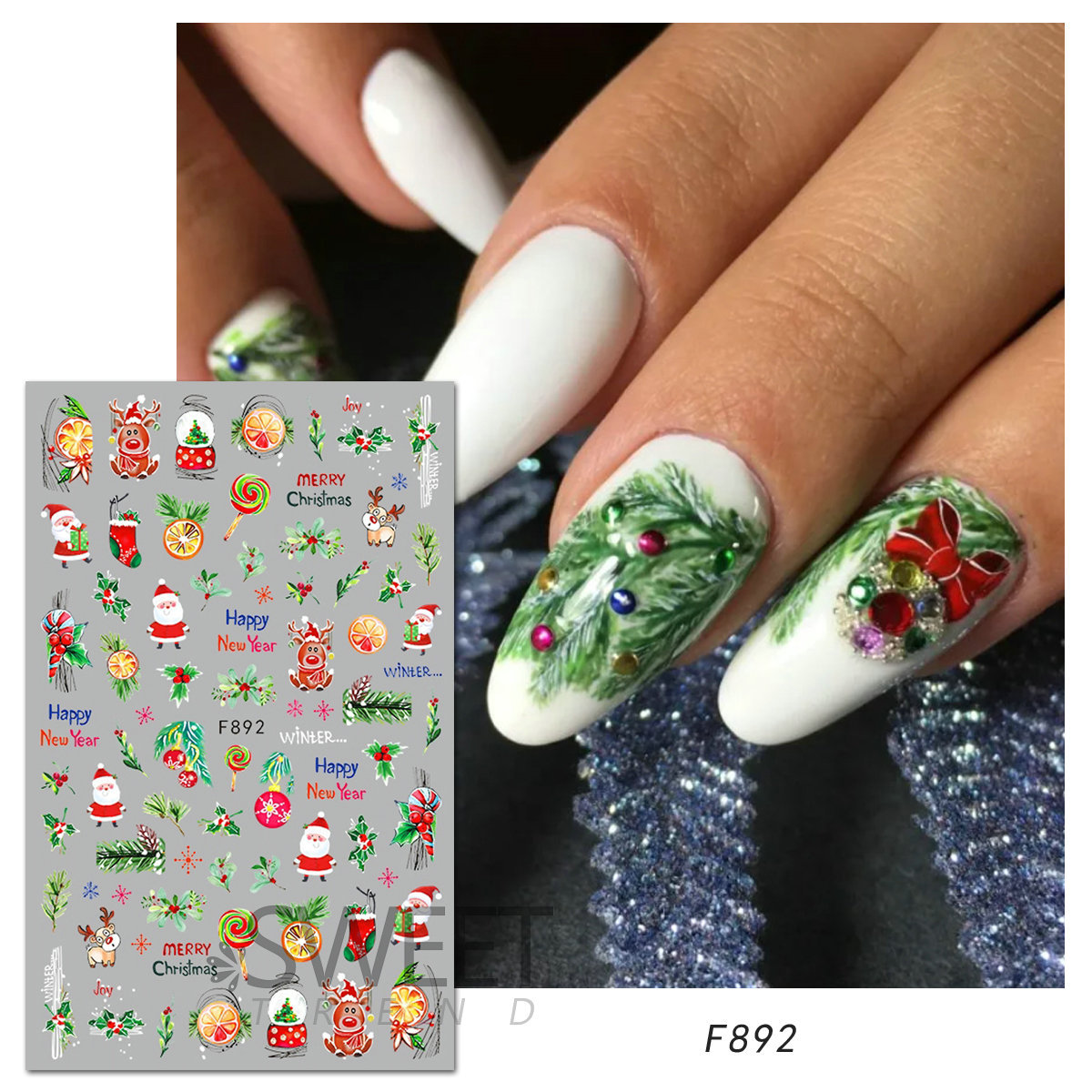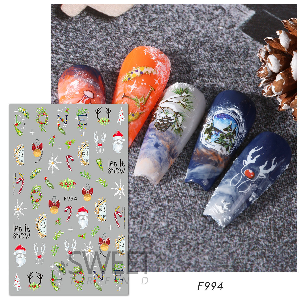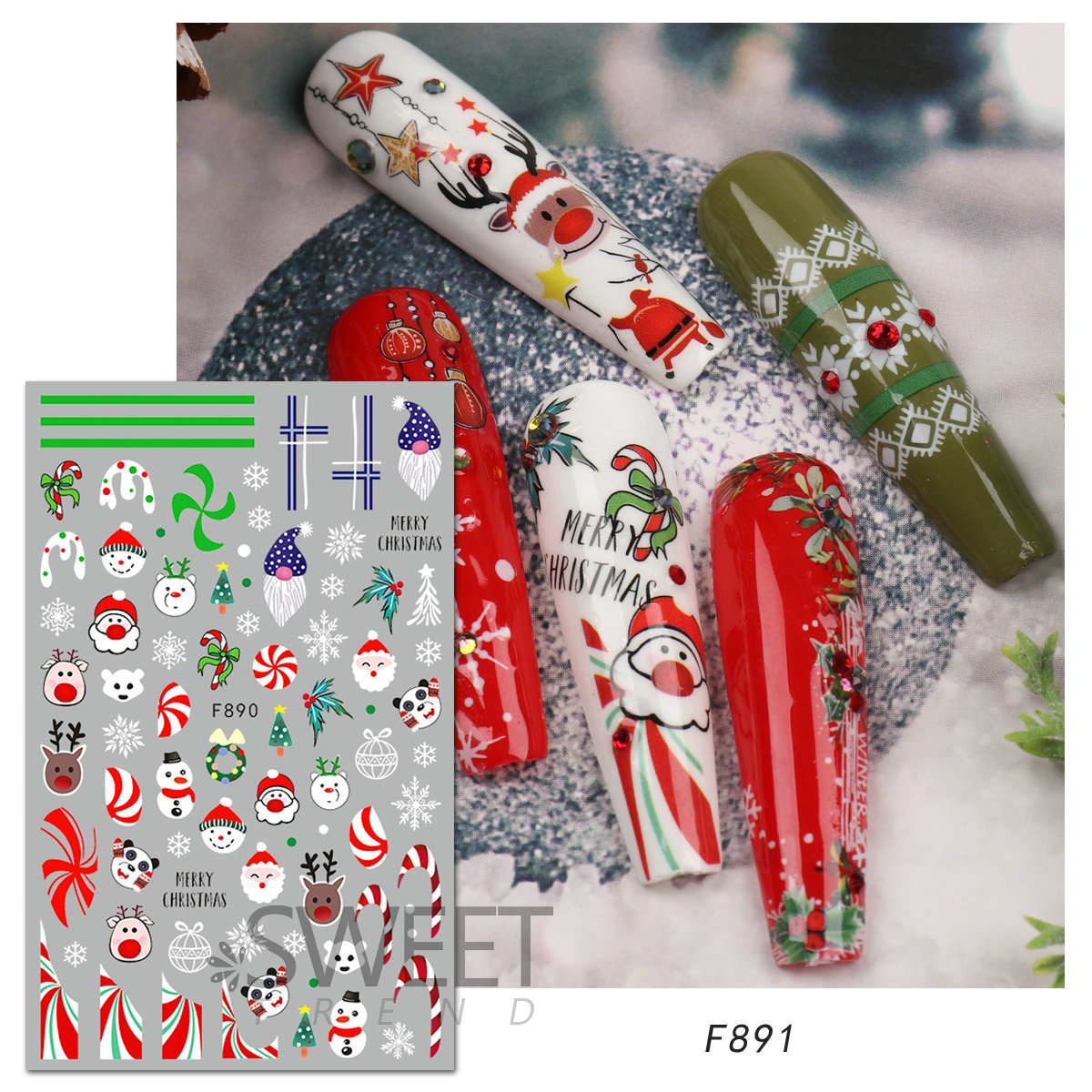 크로스 보더 새로운 네일 아트 스티커 크리스마스 눈송이 크리스마스 트리 노인 만화 비행 사슴 네일 스티커 데칼