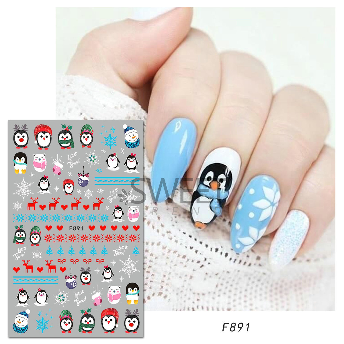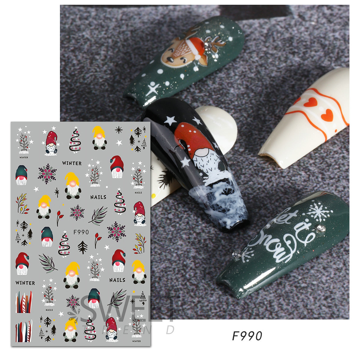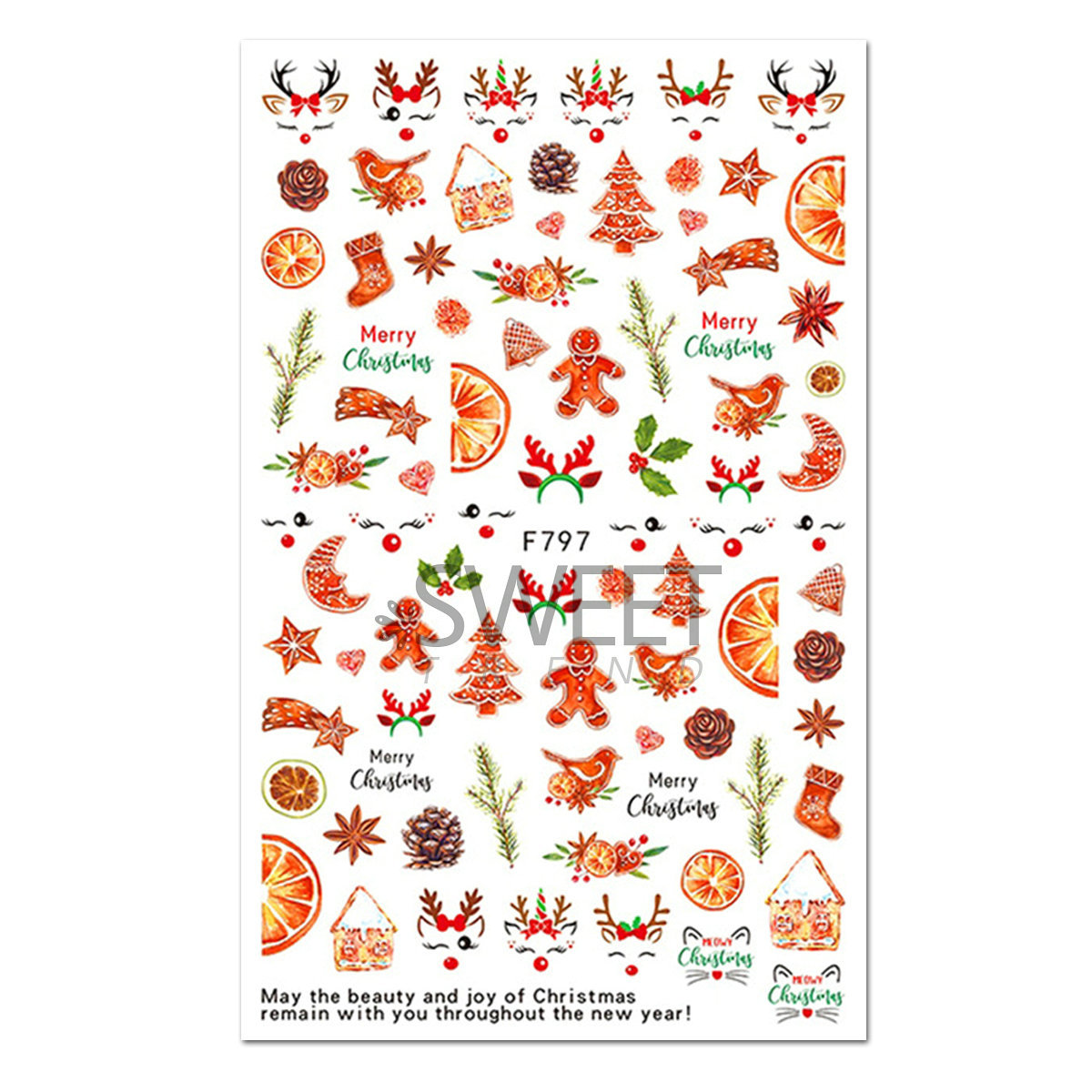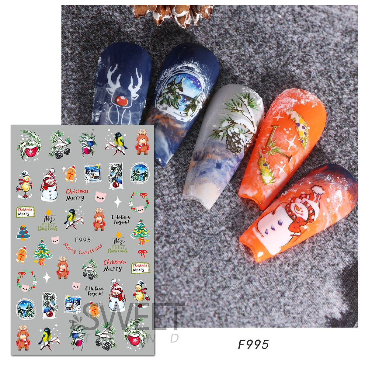 크로스 보더 새로운 네일 아트 스티커 크리스마스 눈송이 크리스마스 트리 노인 만화 비행 사슴 네일 스티커 데칼