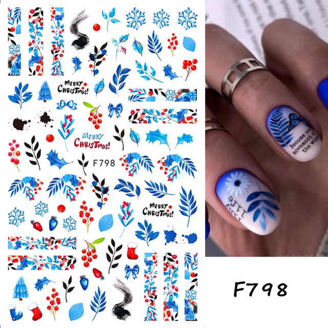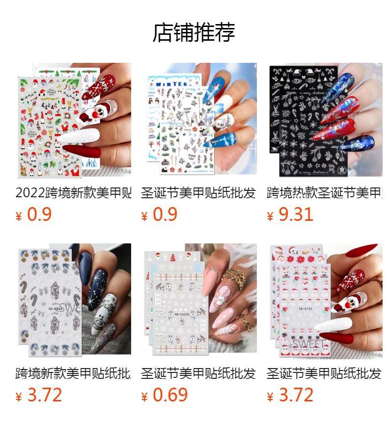 크로스 보더 새로운 네일 아트 스티커 크리스마스 눈송이 크리스마스 트리 노인 만화 비행 사슴 네일 스티커 데칼스토어 가기