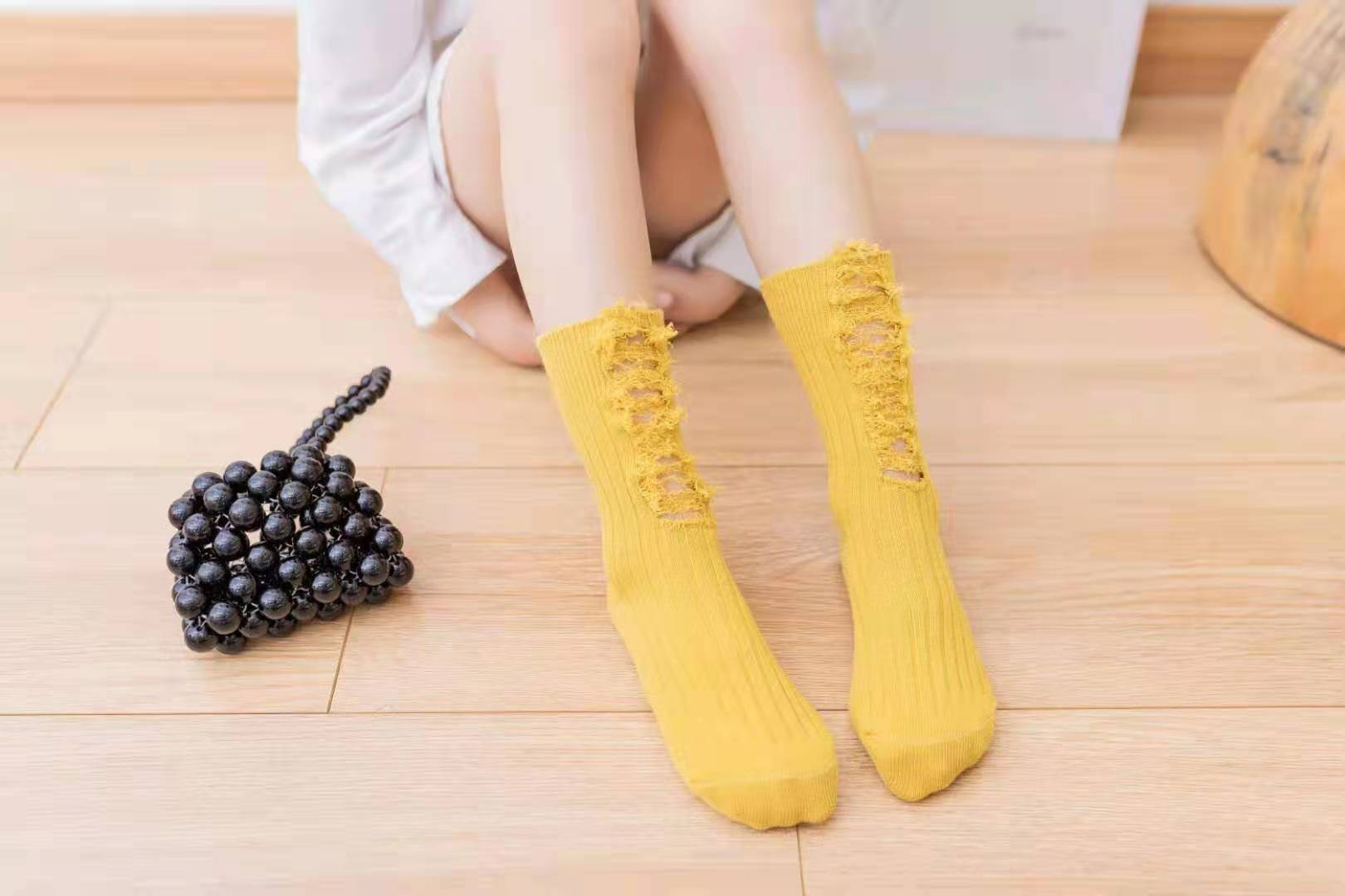 여자 개인 중간 길이 양말 쇼 스타일 사이버 연예인 같은 스타일 스태킹 양말 인스 타 그램 구멍 중공 거지 양말 어린이 유행 양말