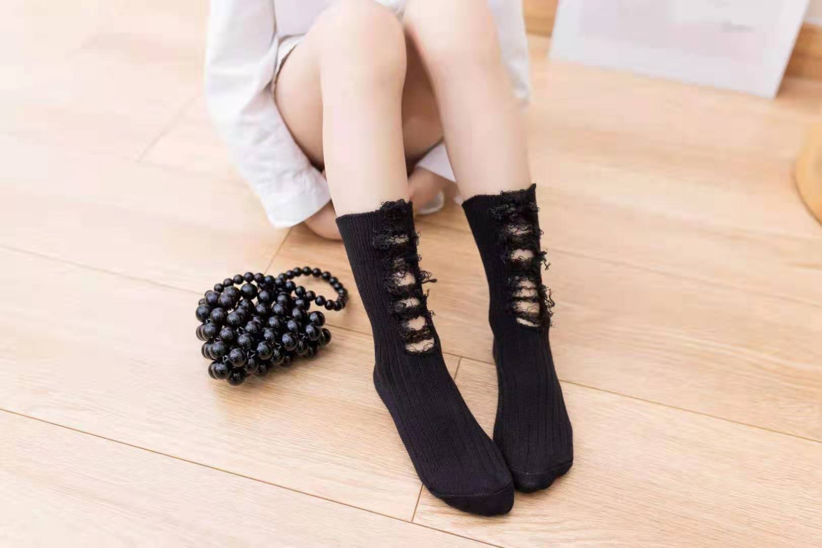 여자 개인 중간 길이 양말 쇼 스타일 사이버 연예인 같은 스타일 스태킹 양말 인스 타 그램 구멍 중공 거지 양말 어린이 유행 양말스토어 가기