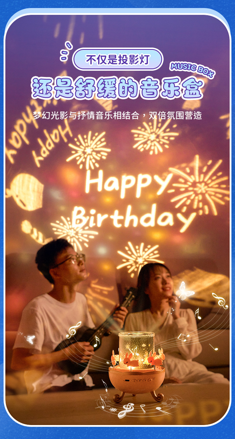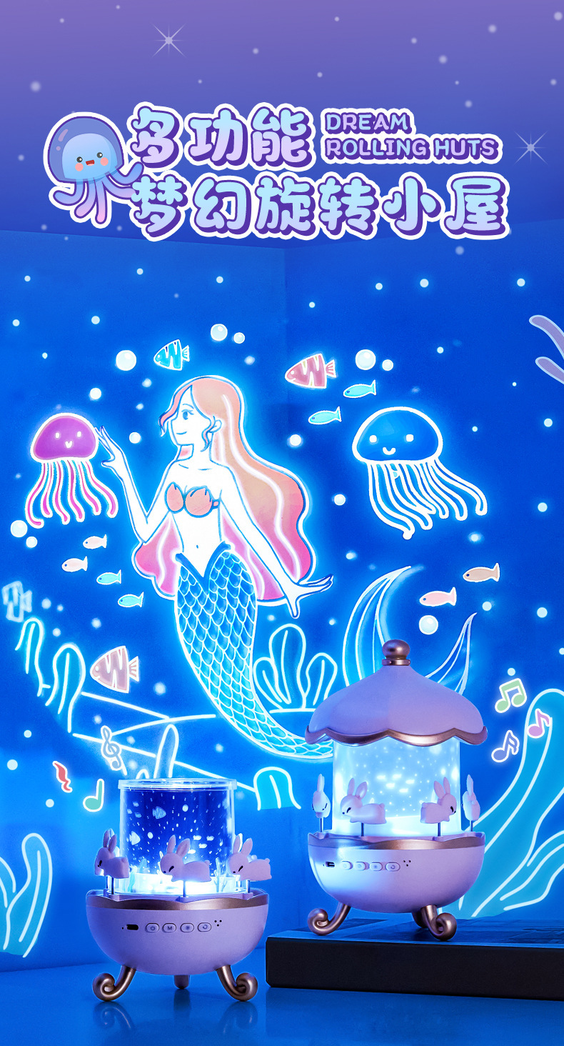 별빛 프로젝터 창의적인 선물 소녀와 어린이를 위한 블루투스 오르골 생일 선물 분위기 있는 야간등 해외 배송