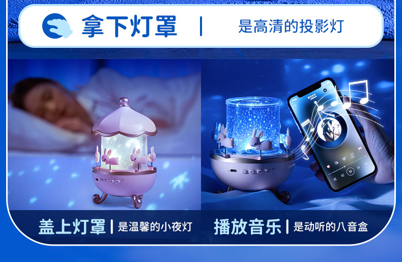 별빛 프로젝터 창의적인 선물 소녀와 어린이를 위한 블루투스 오르골 생일 선물 분위기 있는 야간등 해외 배송스토어 가기