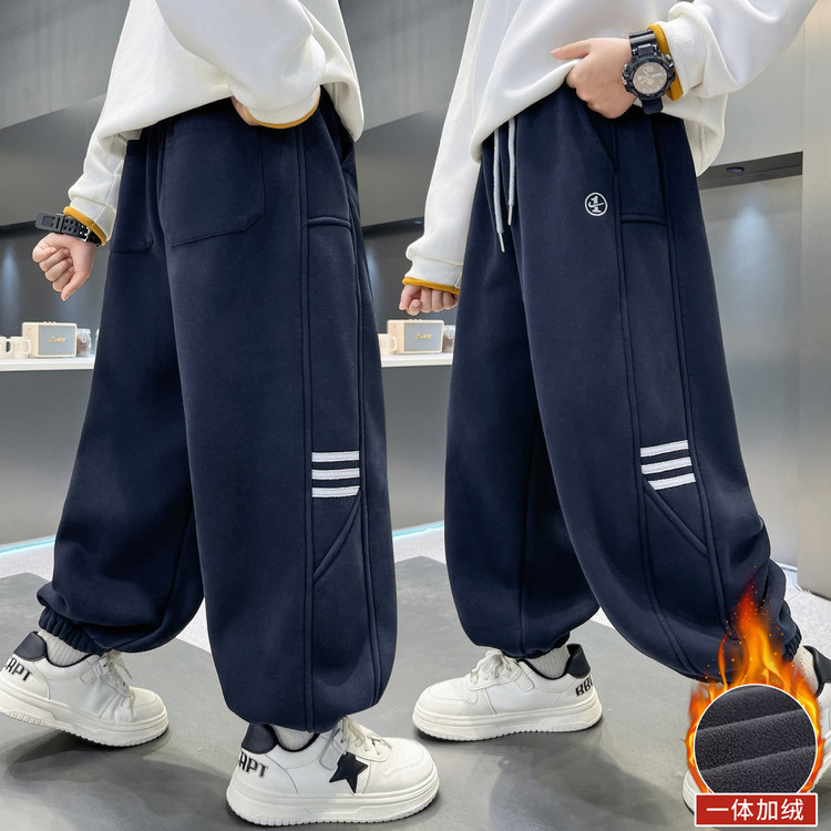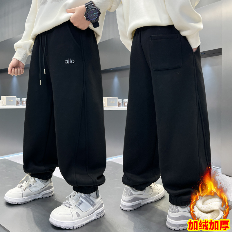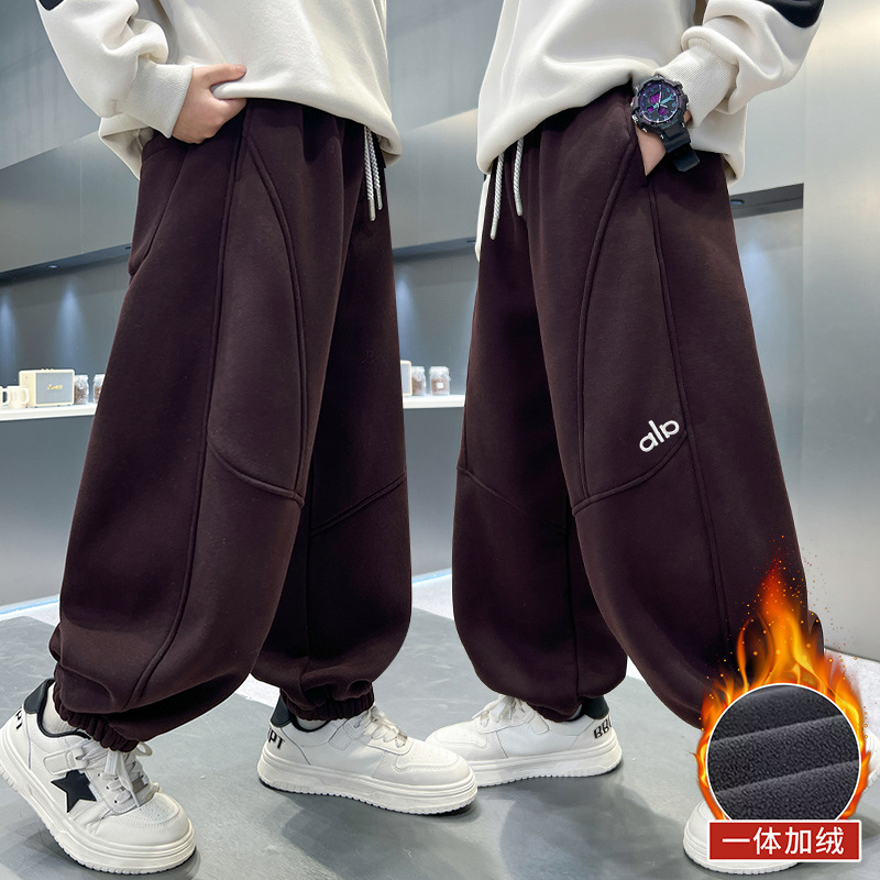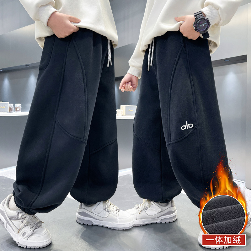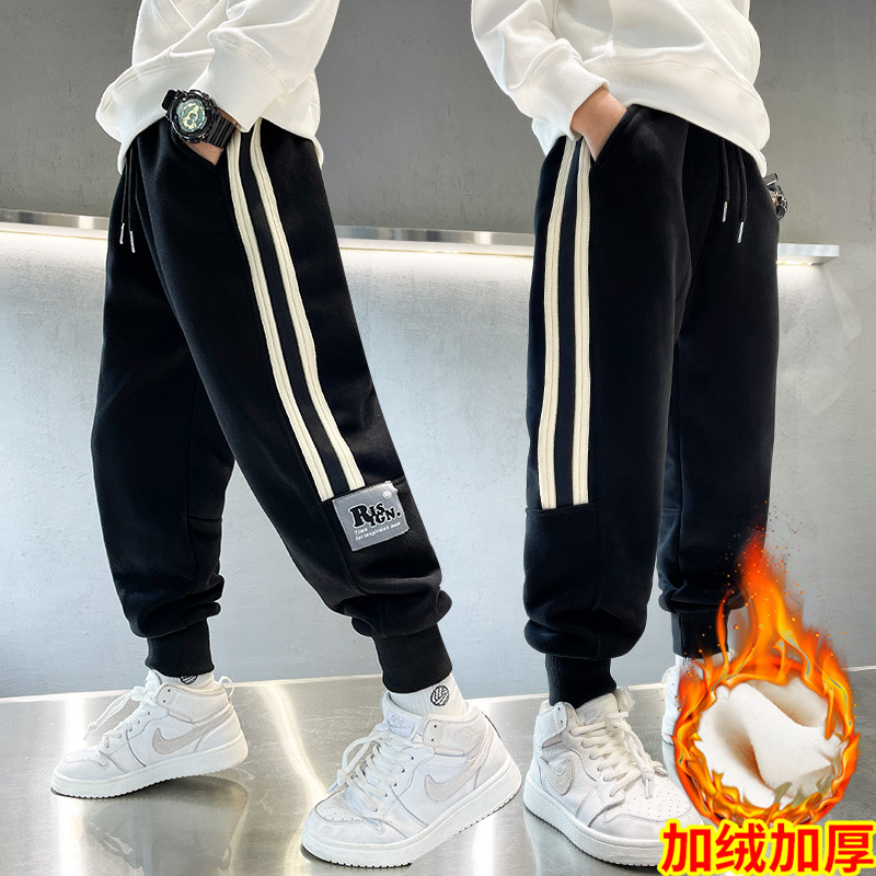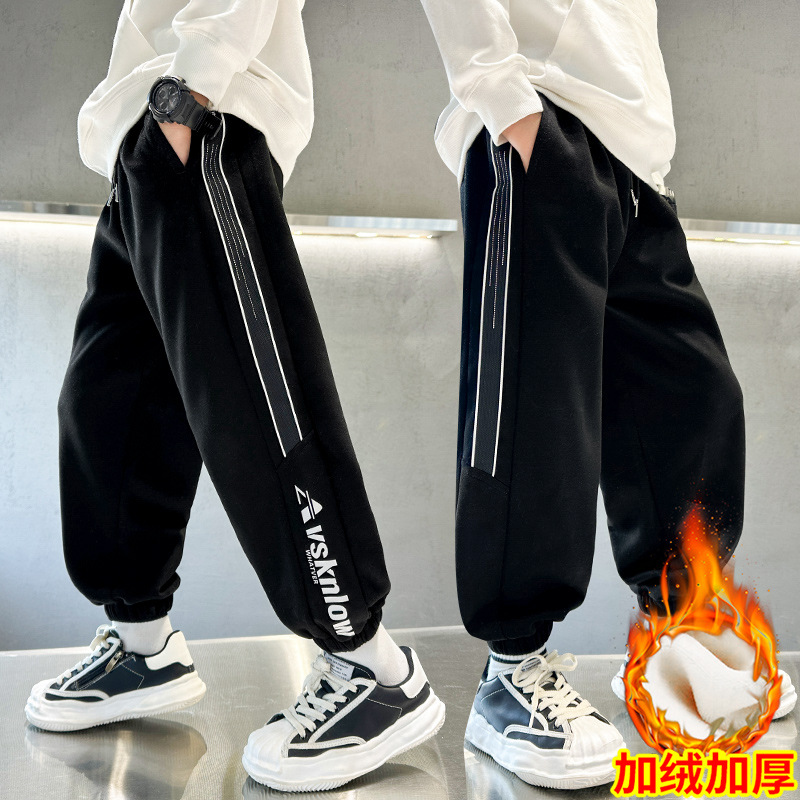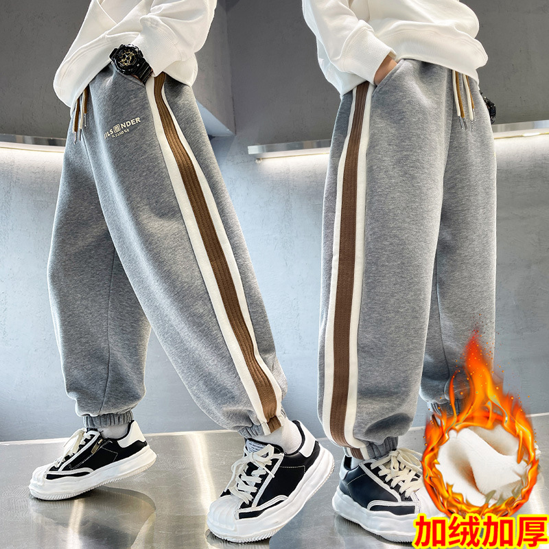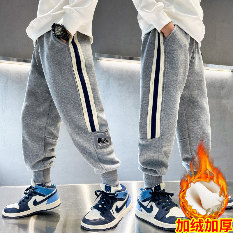 남아용 겨울용 기모 바지 2025 신상 아동 가을 겨울용 두꺼운 중대형 아동 스포츠 캐주얼 바지스토어 가기