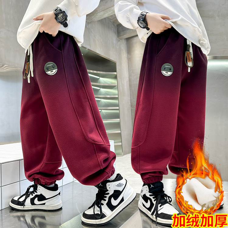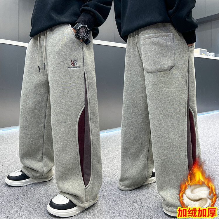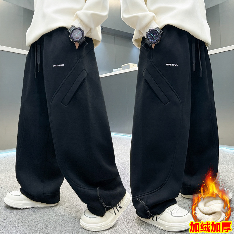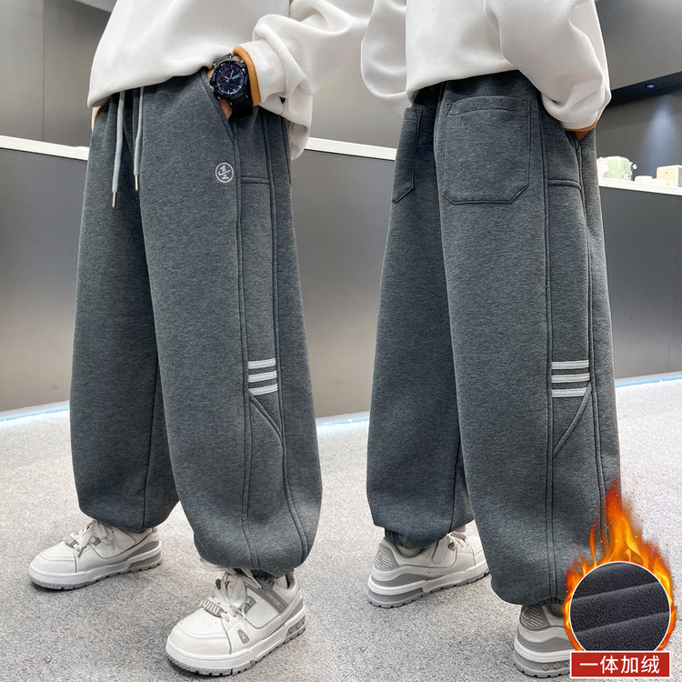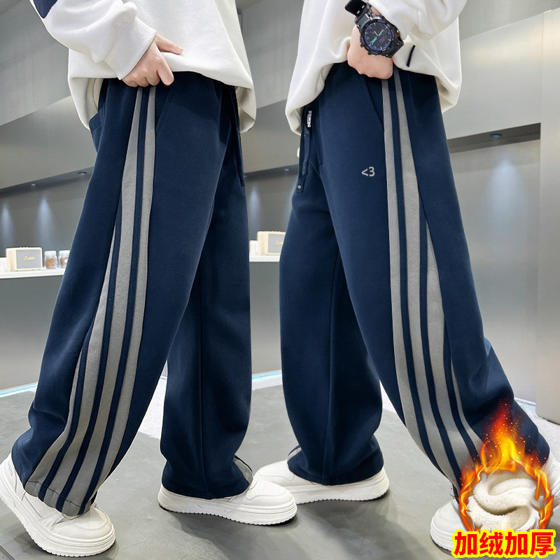 남아용 겨울용 기모 바지 2025 신상 아동 가을 겨울용 두꺼운 중대형 아동 스포츠 캐주얼 바지