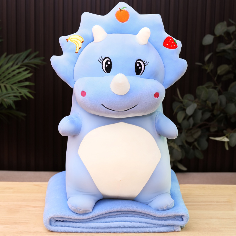 대외 무역 새로운 공룡 에어컨 이불 봉제 장난감 트리케라톱스 투인원 베개 담요 자동차 홈 섬유 소파 용품스토어 가기