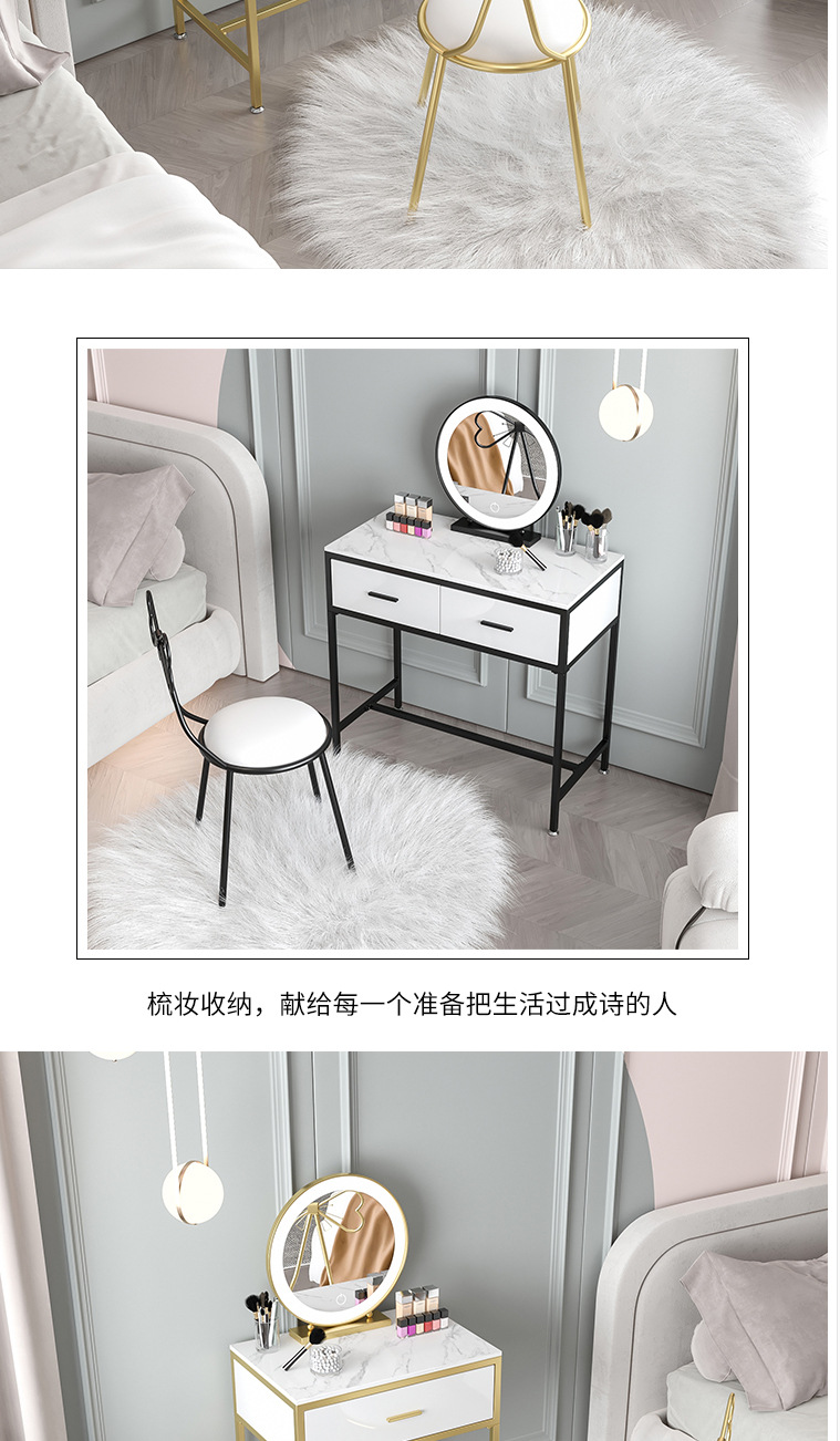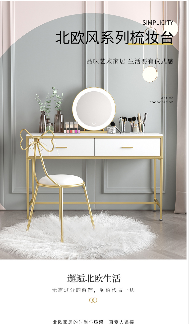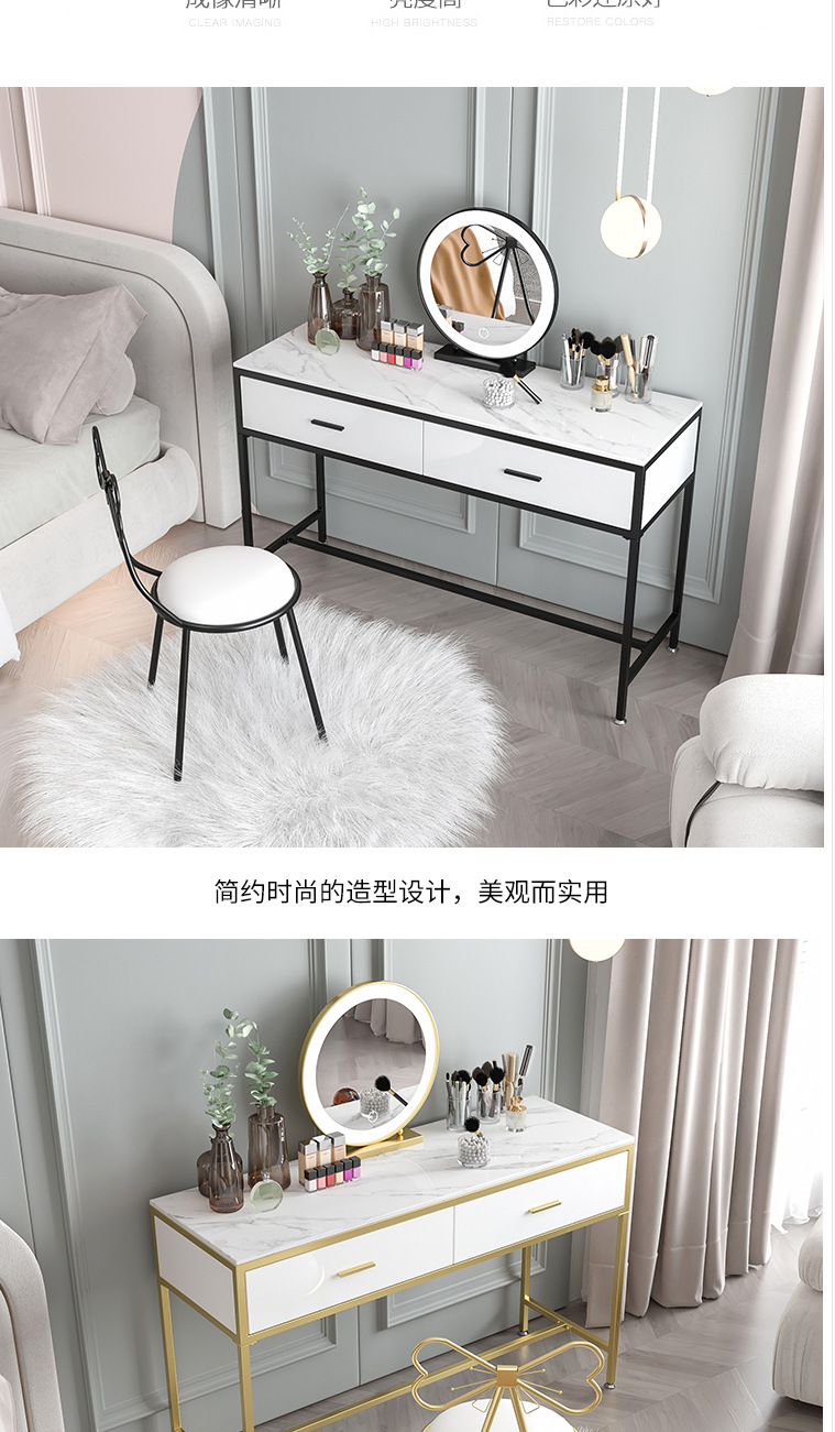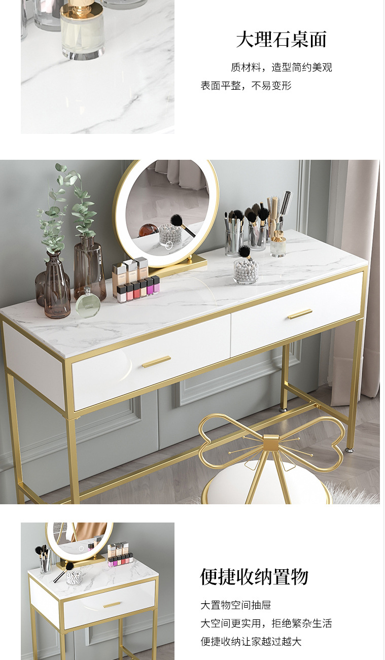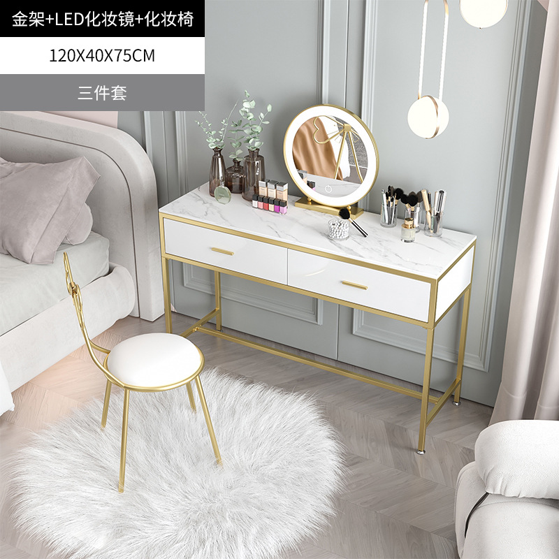 북유럽 인 대리석 화장대 소녀의 침실 화이트 더블 서랍 화장대 연철 메이크업 테이블과 의자 조합스토어 가기