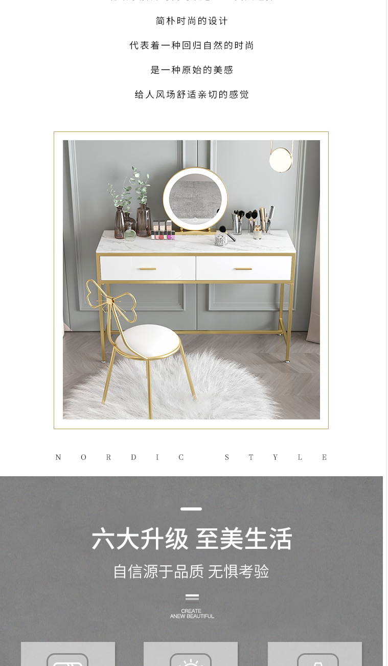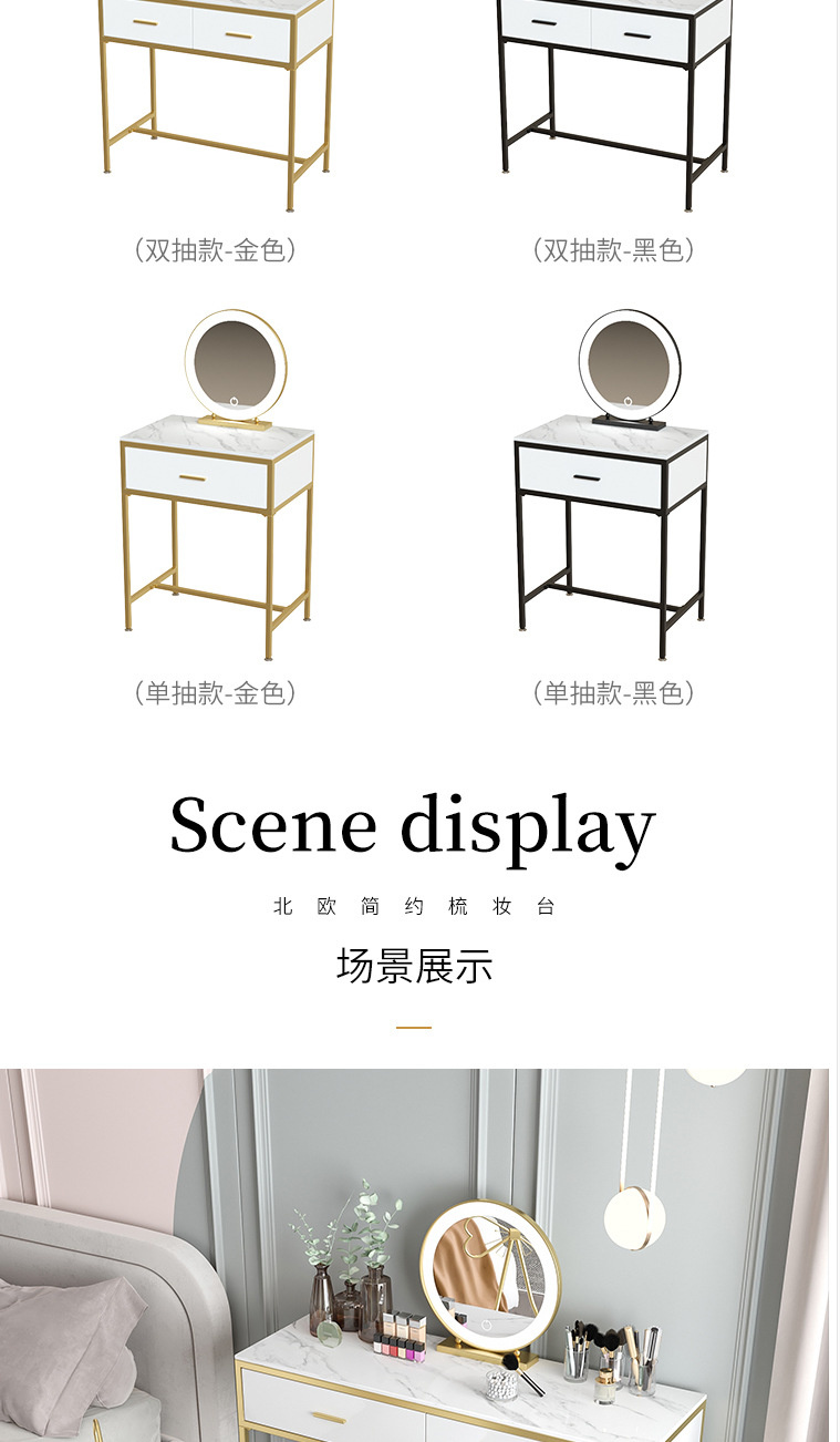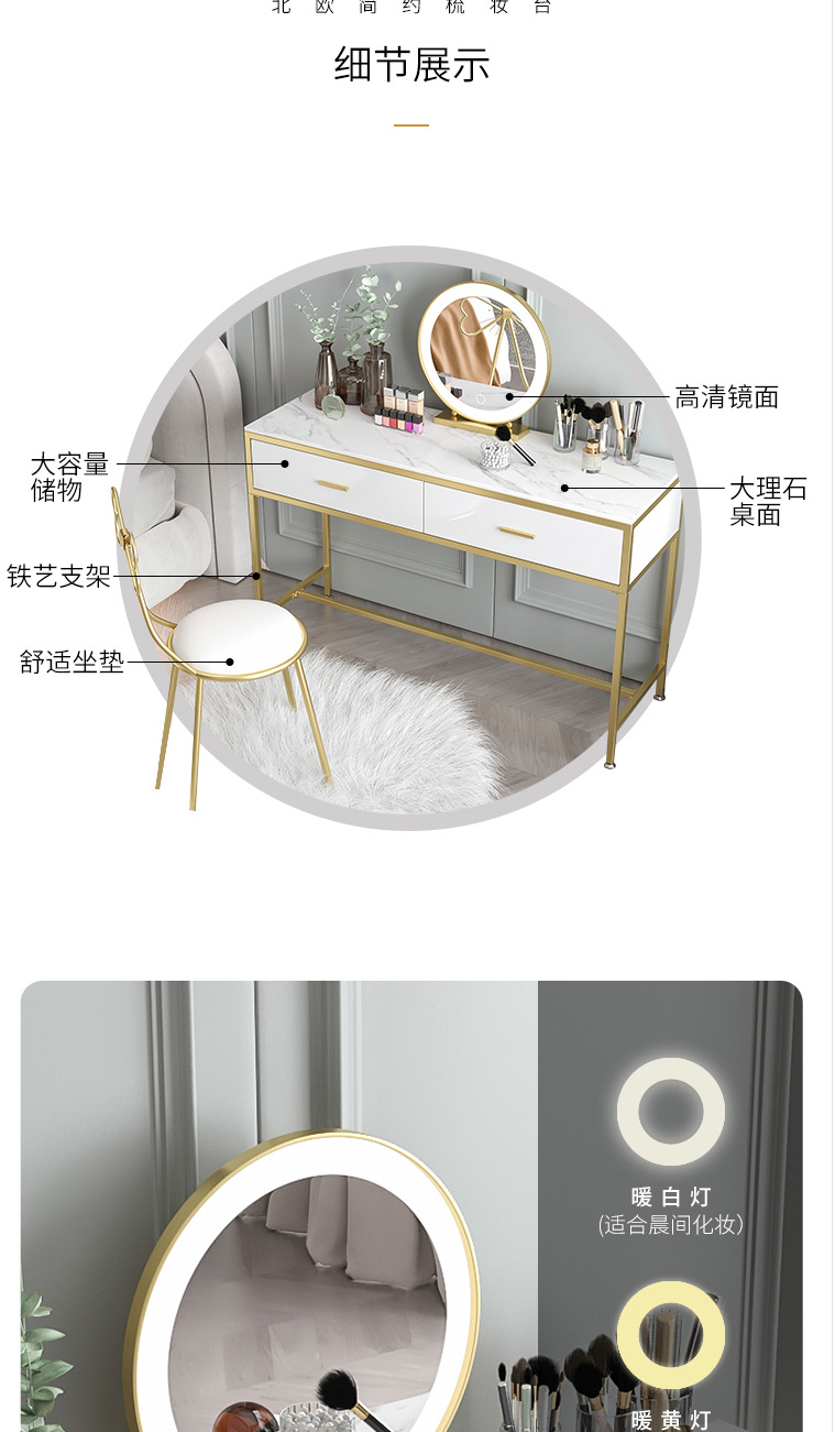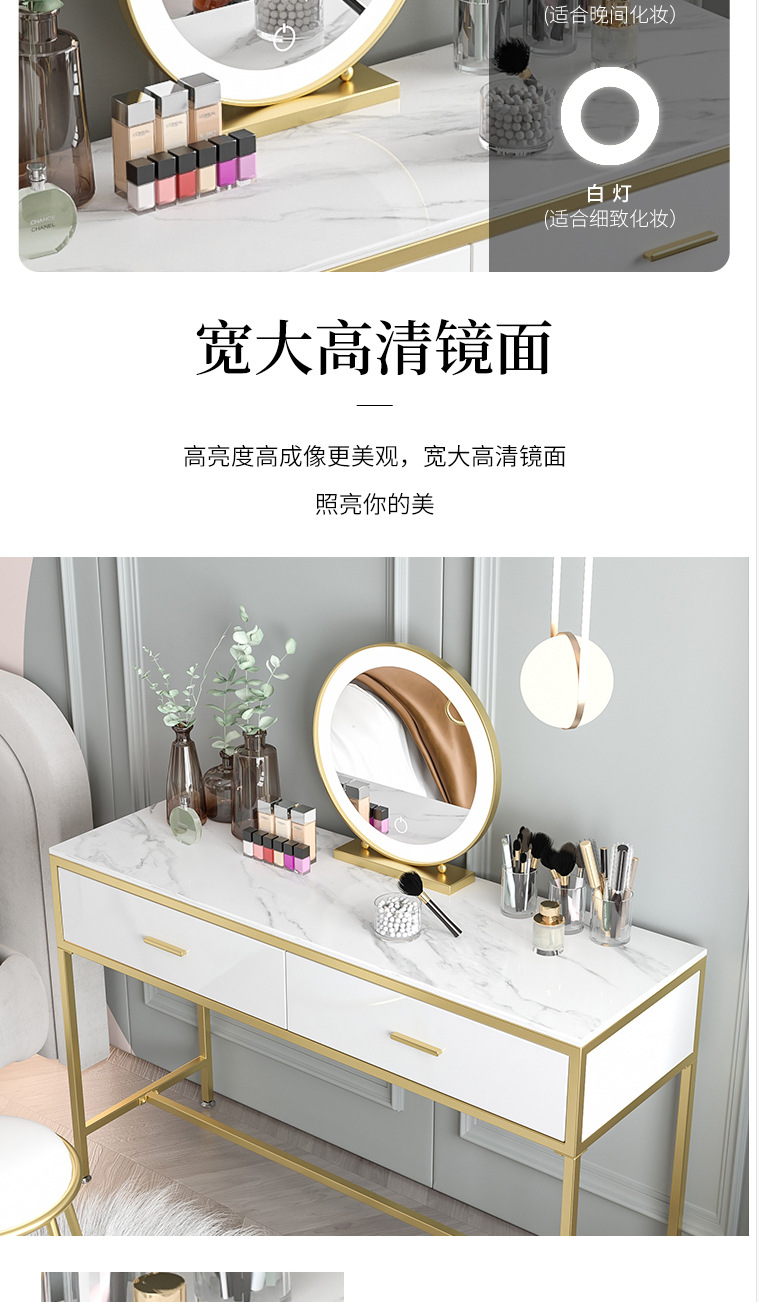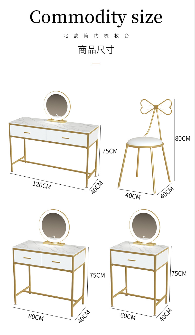 북유럽 인 대리석 화장대 소녀의 침실 화이트 더블 서랍 화장대 연철 메이크업 테이블과 의자 조합스토어 가기