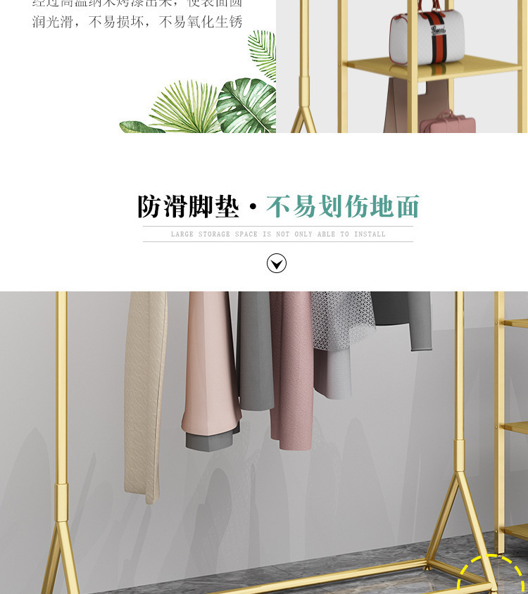의류 매장 디스플레이 랙 플로어 스탠딩 황금 의류 랙 여성 의류 매장 선반 사이드 랙 프론트 랙 철 걸이