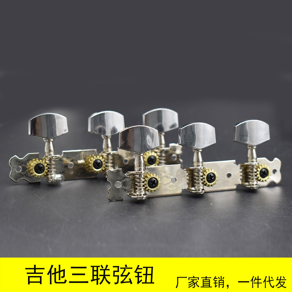 古典吉他弦钮 三联琴弦钮 长三位弦准轴上卷弦器 双孔钢柱