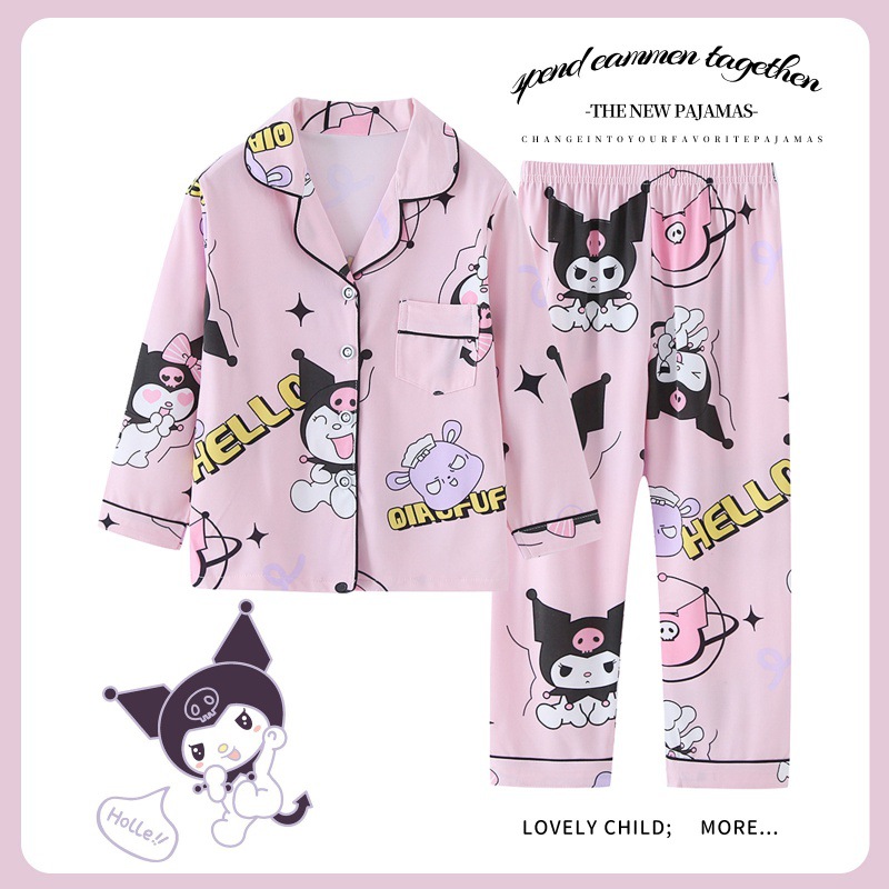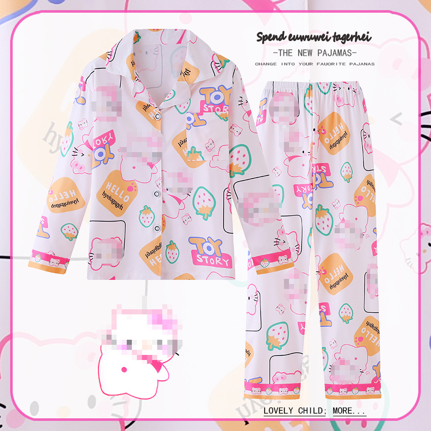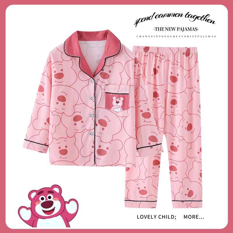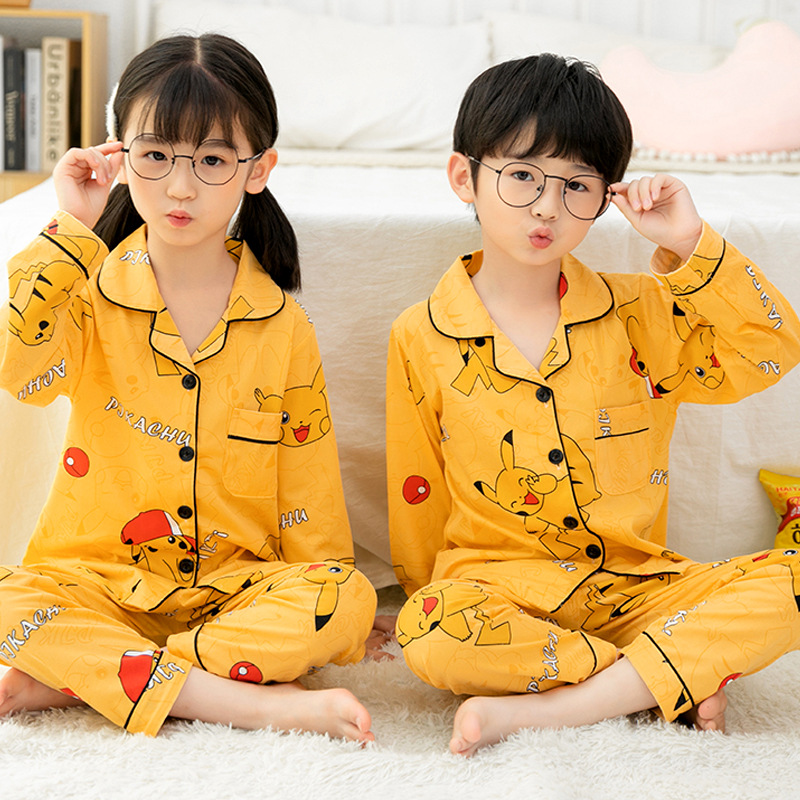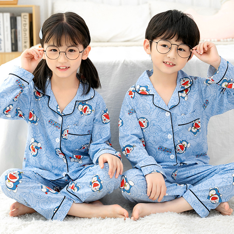 새로운 어린이 잠옷 소년 소녀 긴 소매 봄과 가을 만화 소년 '및 아기 소녀 중간 및 큰 어린이 가정 옷 세트