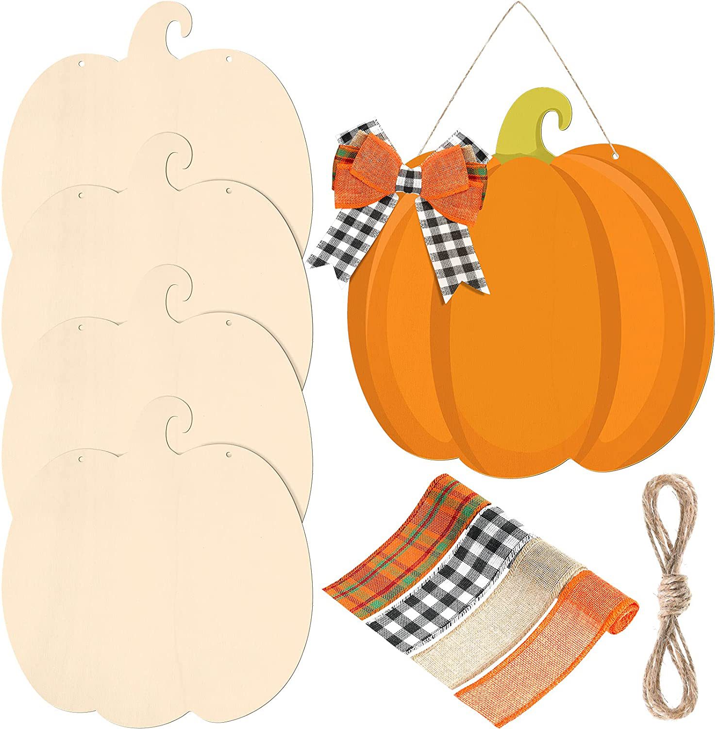 产品名称:感恩节木质镂空南瓜丝带派对装饰 万圣节木制南瓜丝带DIY套装