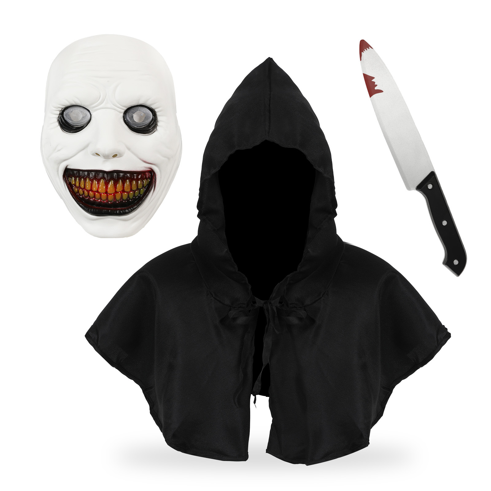• 검은 망토 + 플라스틱 흰색 엑소시스트 + 피 묻은 칼
