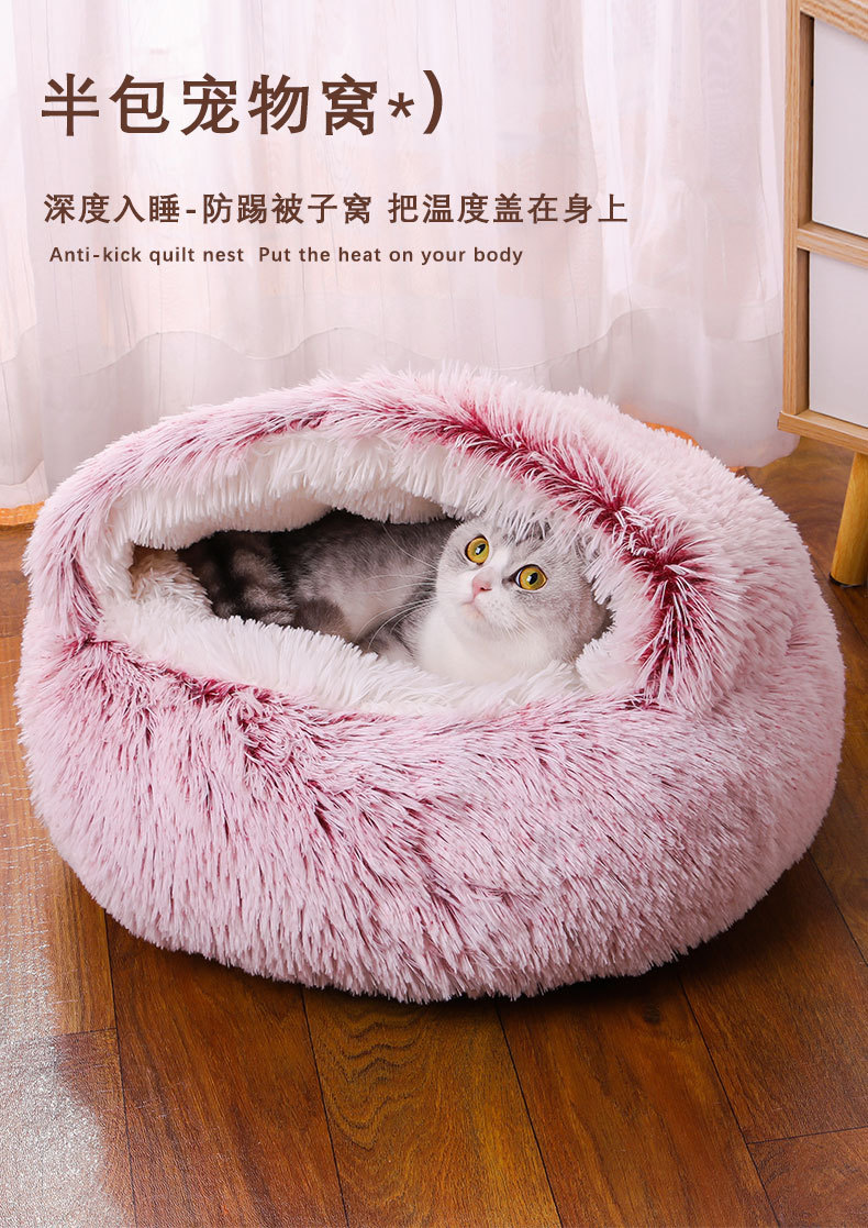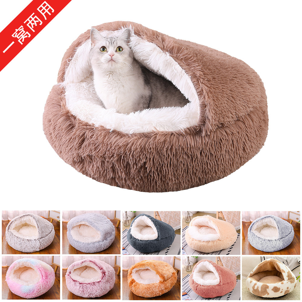 고양이 둥지 깊은 수면 하프 팩 반 폐쇄 고양이 둥지 이중 사용 애완 동물 패드 봉제 원형 애완 동물 둥지