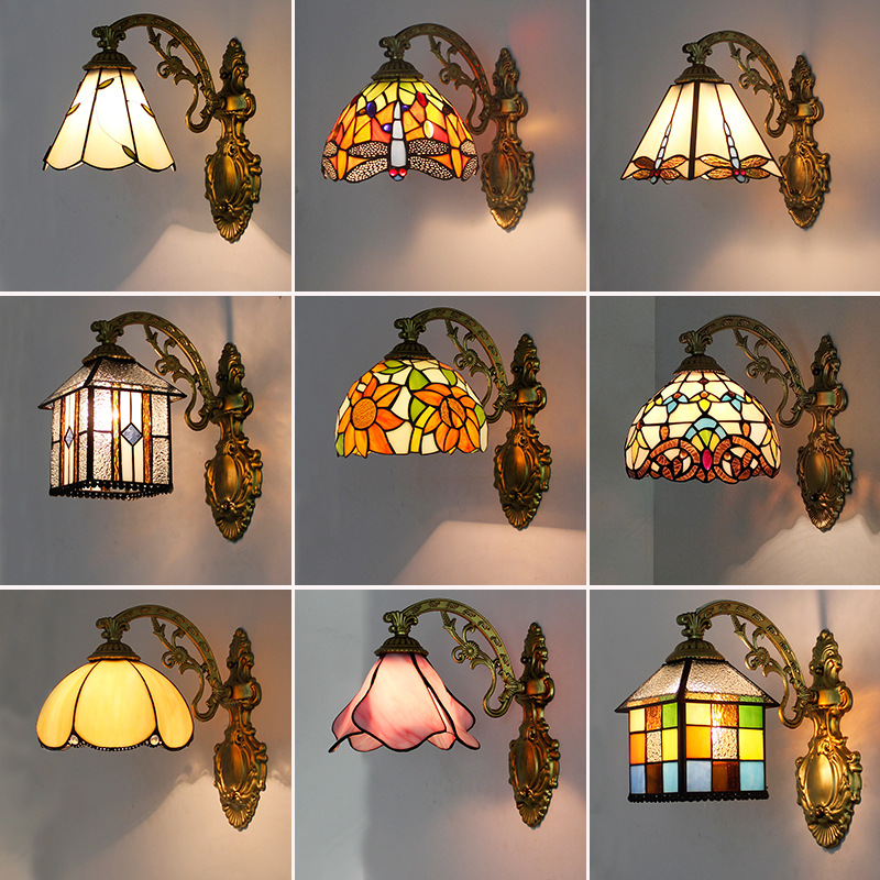 유럽 레트로 티파니 벽 램프 거울 전면 램프 목가적 인 침실 통로 거실 침실 벽 램프 화장실 거울 램프스토어 가기