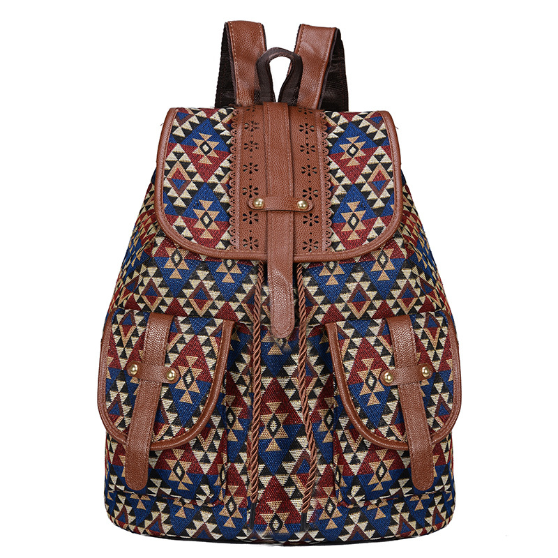 국경을 넘는 이국적인 스타일의 백팩, 레트로 트렌디, 대용량, 캐주얼, 개성 있는 스트랩 여성 가방, 책가방, 휴대용스토어 가기