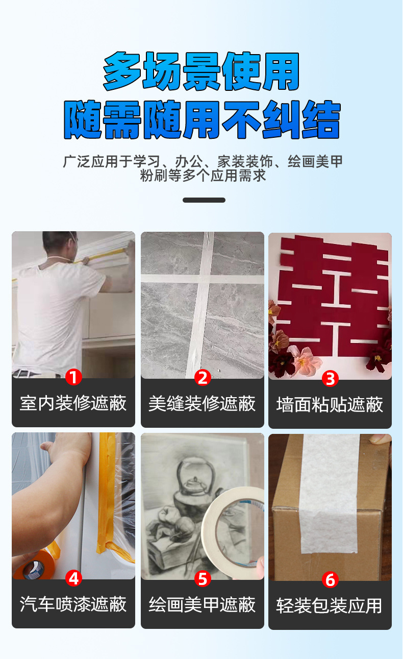 • 중간 및 높은 접착 마스킹 테이프, 폭 5.0cm* 길이 50m (상자 전체에 10롤)