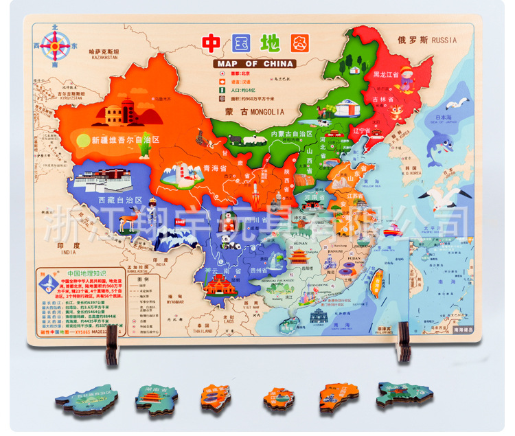 새로운 자기 중국지도 퍼즐 나무 장난감 퍼즐 어린이 대화 형인지 교육지도 제조 업체 도매