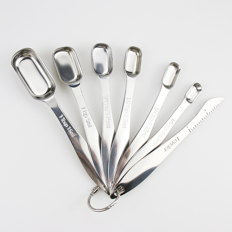 스테인레스 스틸 측정 스푼 8 개 세트 사각 측정 스푼 주방 조미료 측정 스푼 측정 스푼 주방 베이킹 스케일 측정 스푼