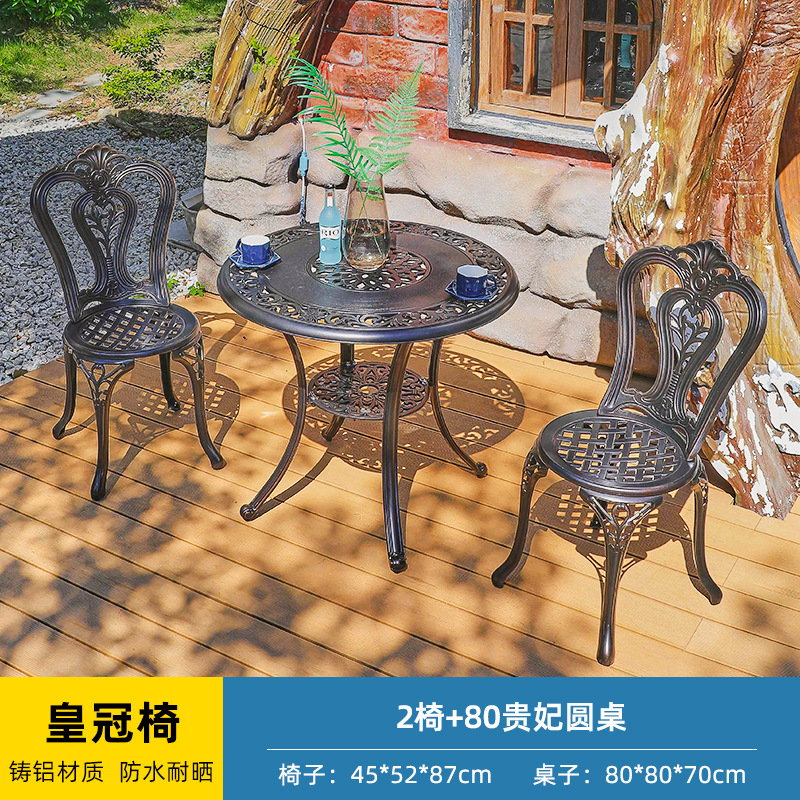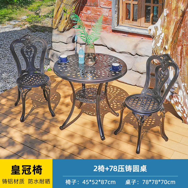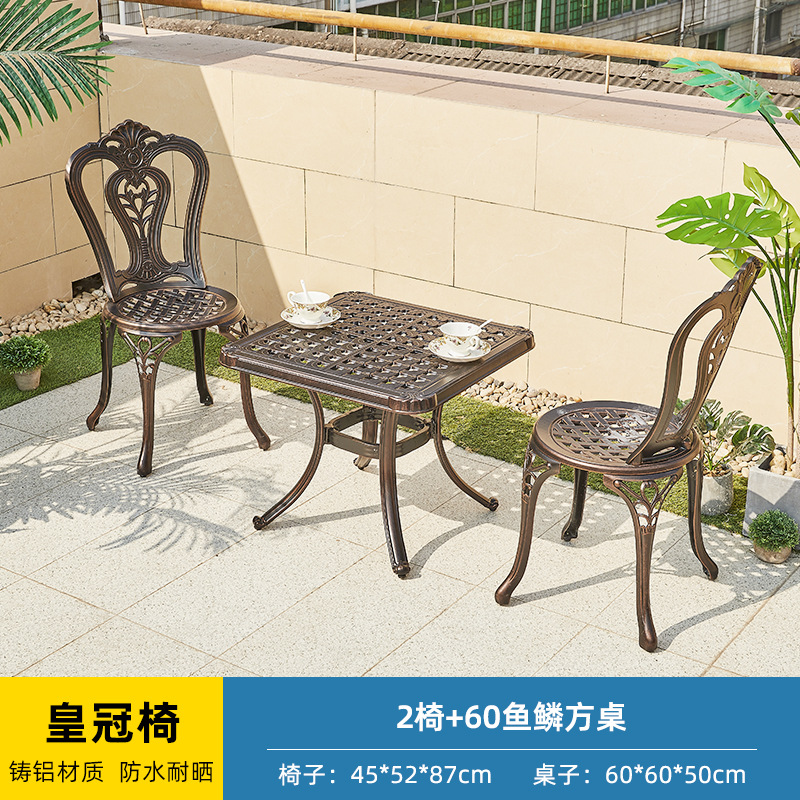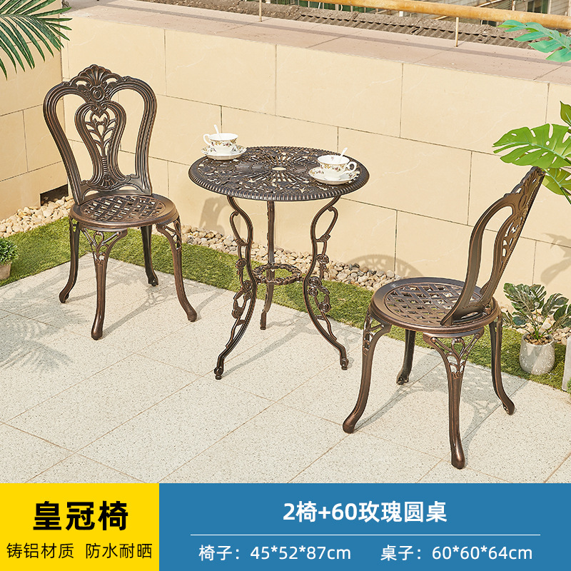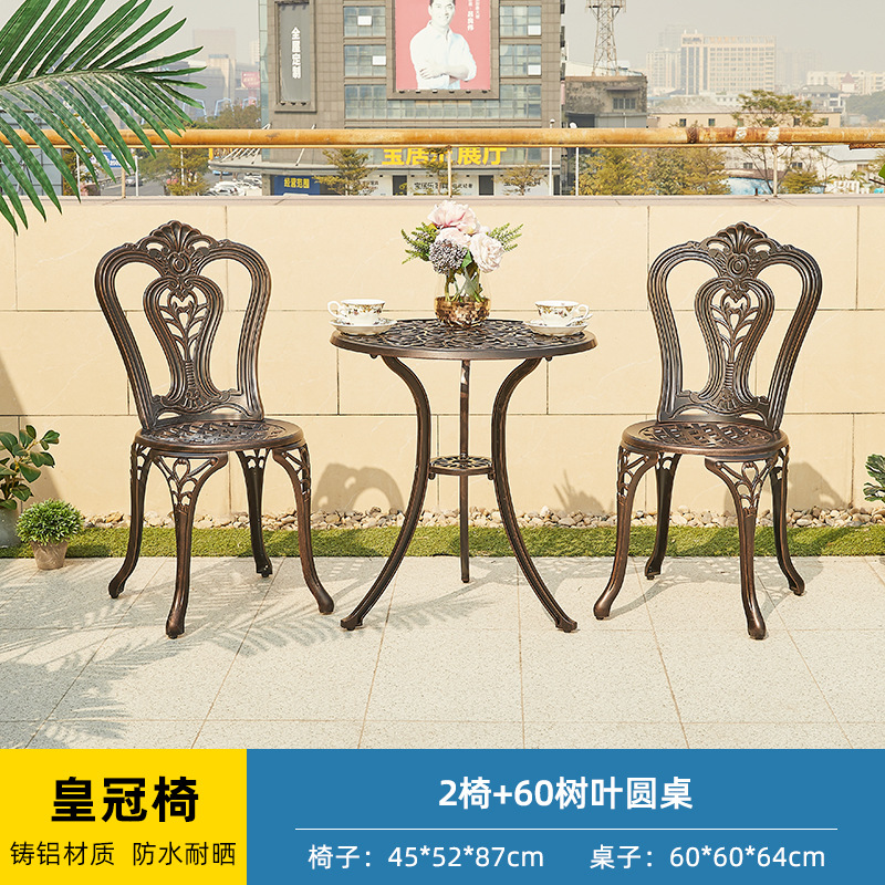 야외 캐스트 알루미늄 테이블과 의자 3 종 세트 발코니 작은 커피 테이블 야외 안뜰 정원 레저 방수 철 테이블과 의자 조합
