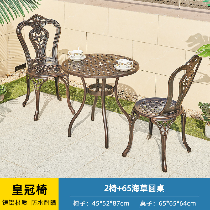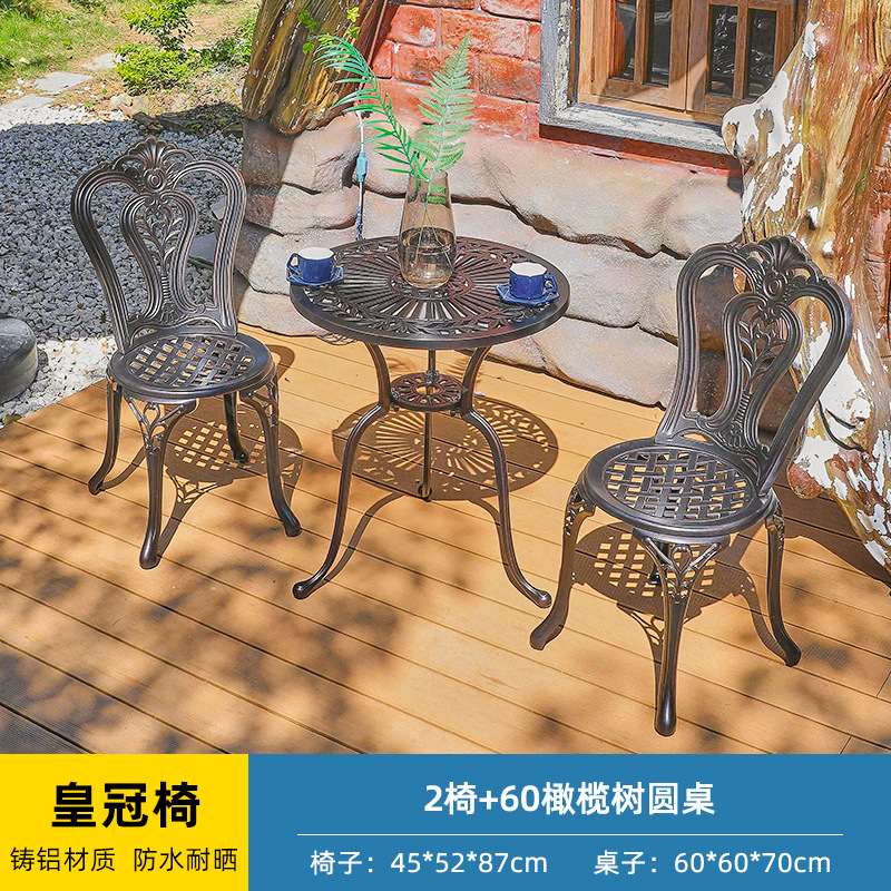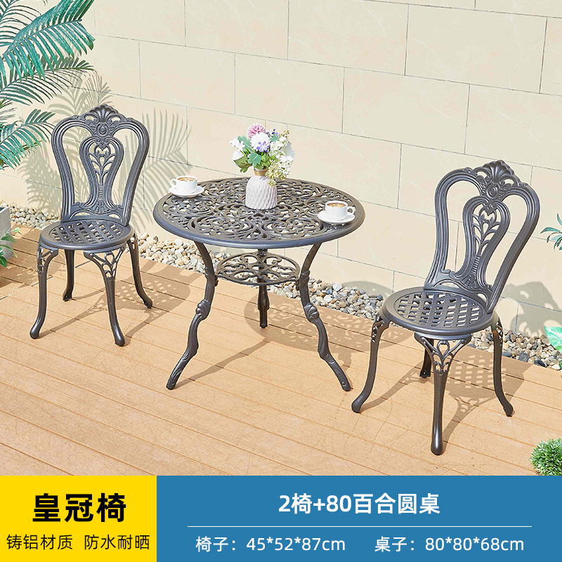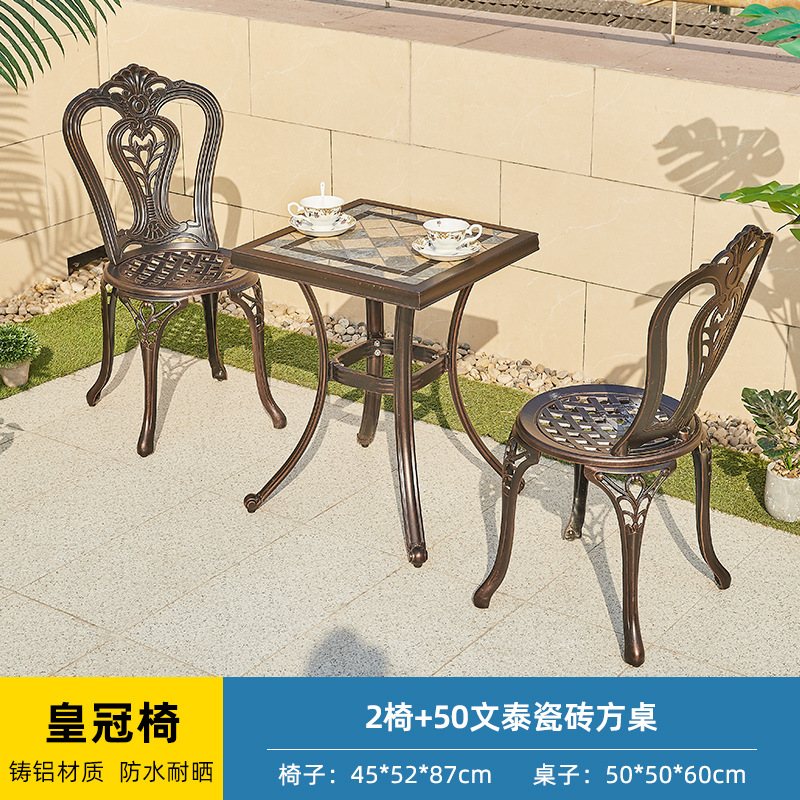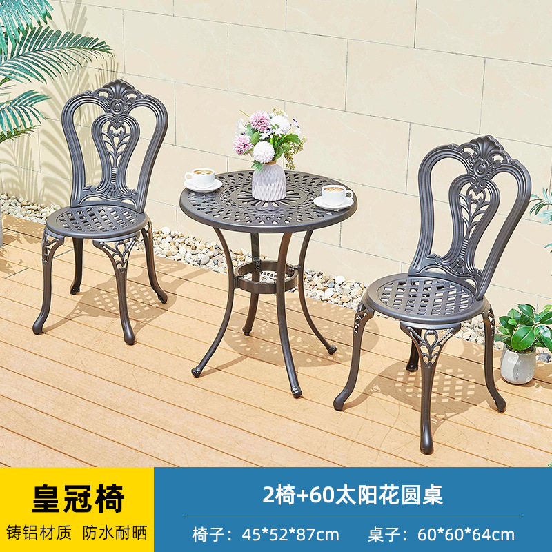 야외 캐스트 알루미늄 테이블과 의자 3 종 세트 발코니 작은 커피 테이블 야외 안뜰 정원 레저 방수 철 테이블과 의자 조합
