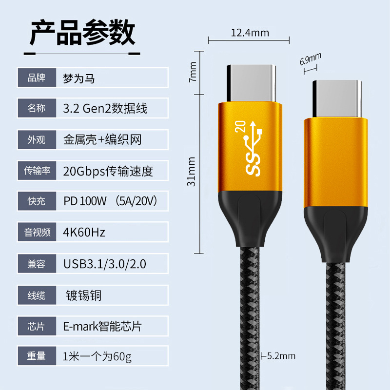 • 1 m 금 껍질 + 그물 (20Gbps + 4K60Hz + PD100W)