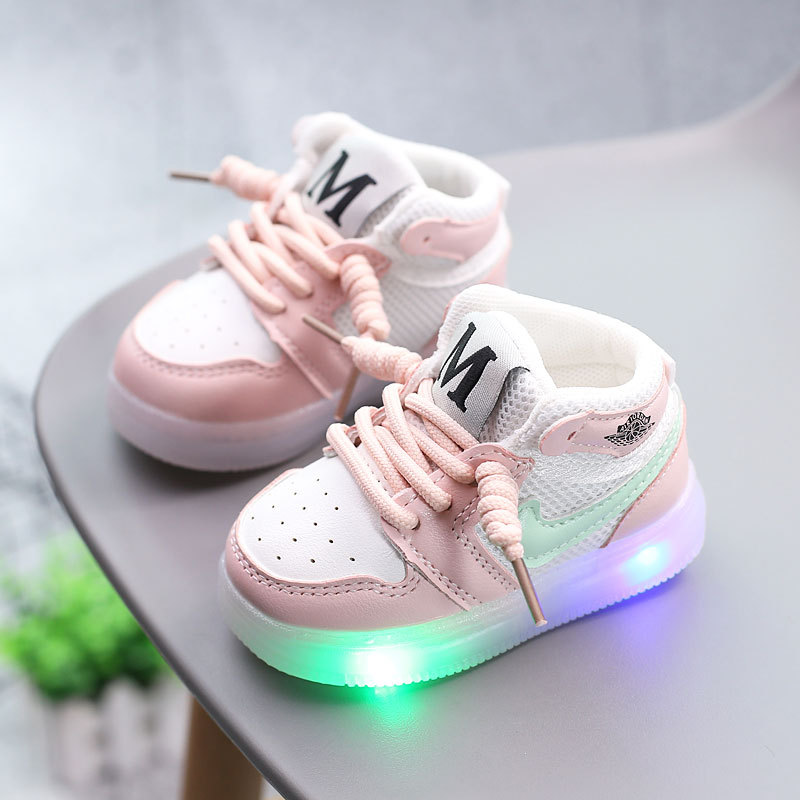 밝은 조명 아기 소년 신발 소녀 통기성 메쉬 신발 운동화 보드 신발 부드러운 바닥 아기 유아 신발 1-3 세 0 봄과 가을스토어 가기