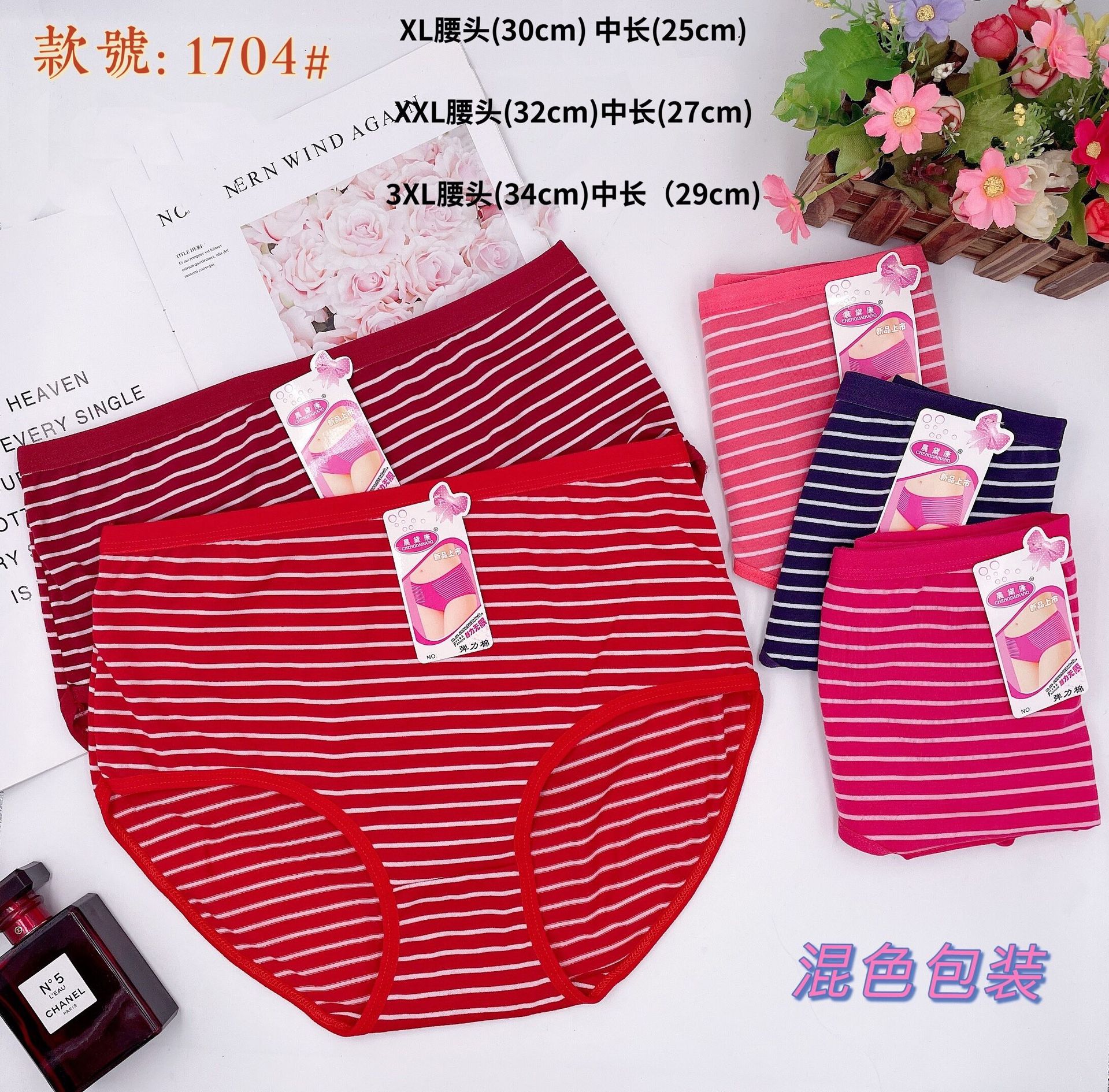 여성용 플러스 사이즈 코튼 브리프 중년 및 노인 스트라이프 플러스 사이즈 편안한 통기성 속옷 여성용 허리 여성용 반바지스토어 가기