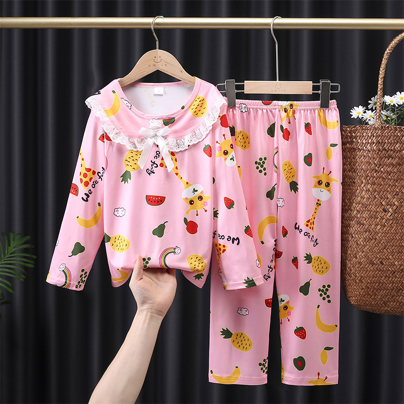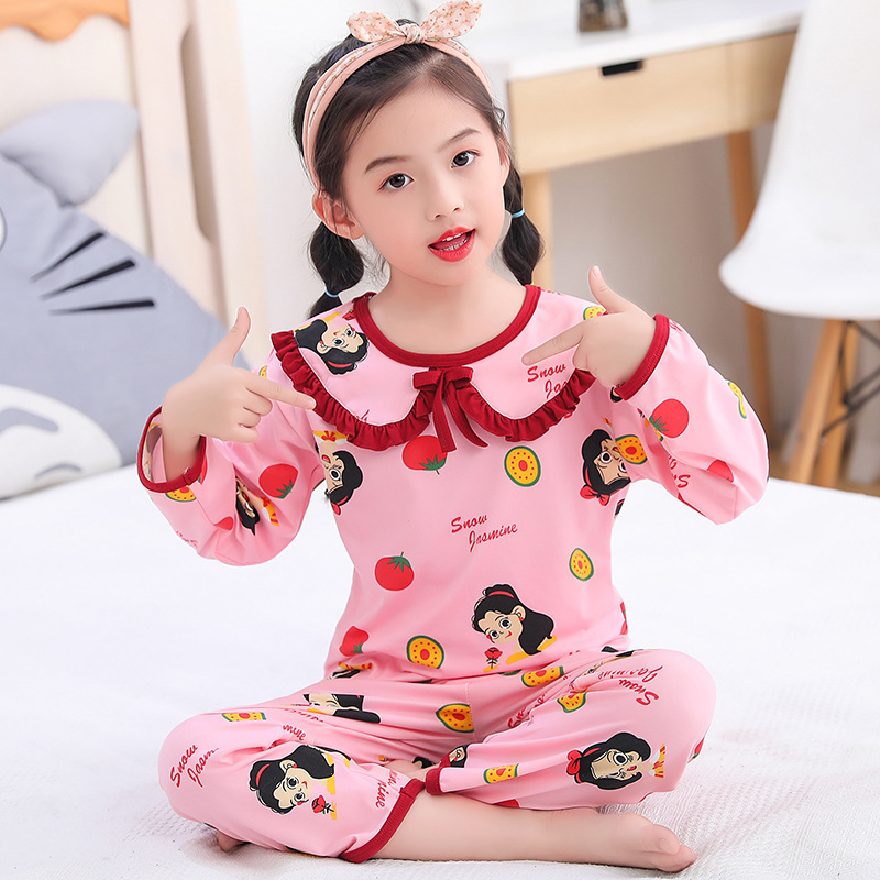 어린이 잠옷 봄과 가을 새로운 긴 소매 공주 바람 인터넷 연예인 라이브 소녀 아기 세트 소녀 가정 옷 세트스토어 가기