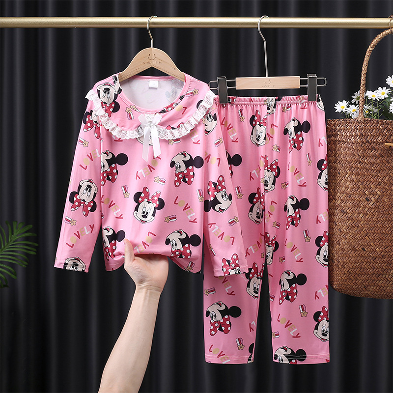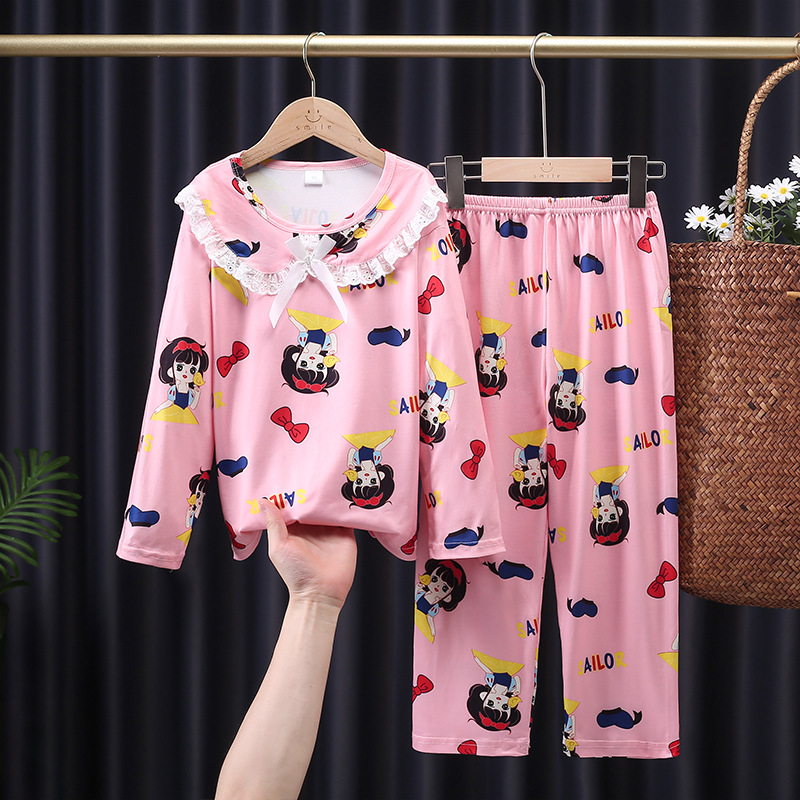 어린이 잠옷 봄과 가을 새로운 긴 소매 공주 바람 인터넷 연예인 라이브 소녀 아기 세트 소녀 가정 옷 세트