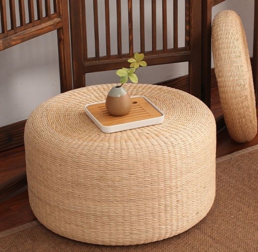 다도 밀짚 짜기 다다미 매트 명상 예배 매트 두꺼운 명상 매트 바닥 쿠션 등나무 직조 Pu 매트 cattail 이불