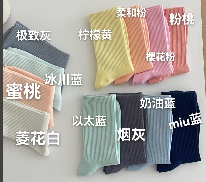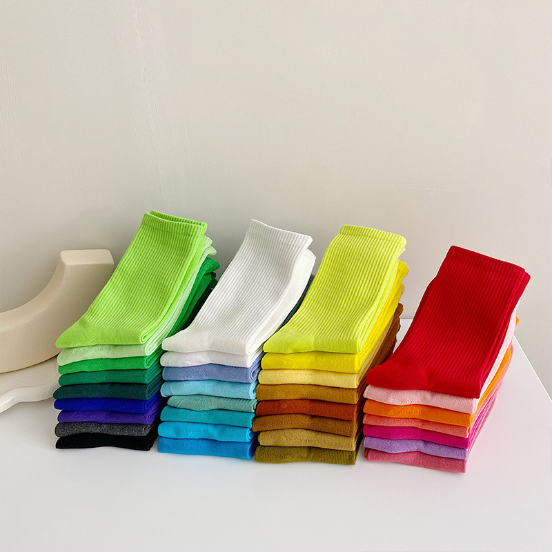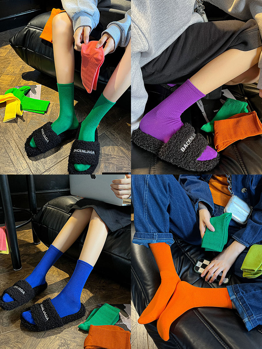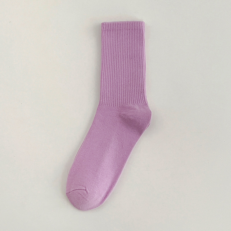 컬러 양말 여성 중간 길이 양말 인스 트렌드 춤 현대 무용 가을 겨울 면 양말 흰색 단색 긴 양말스토어 가기