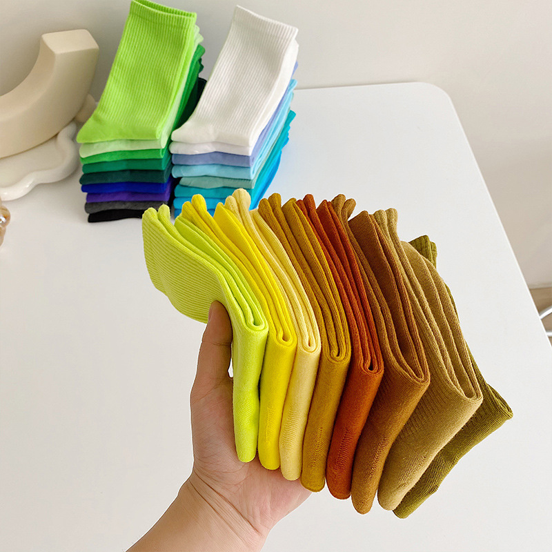 컬러 양말 여성 중간 길이 양말 인스 트렌드 춤 현대 무용 가을 겨울 면 양말 흰색 단색 긴 양말