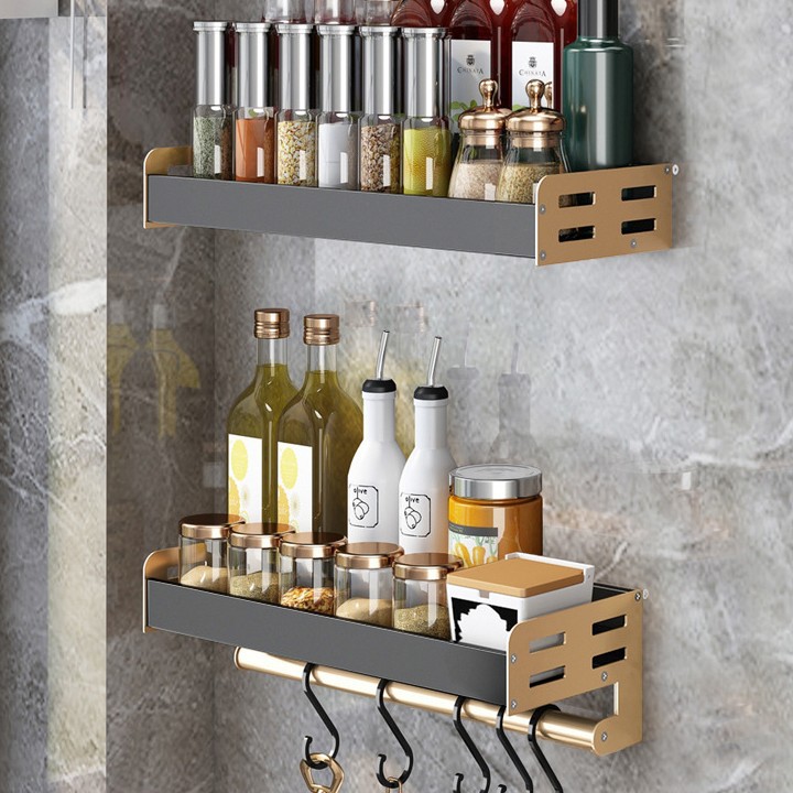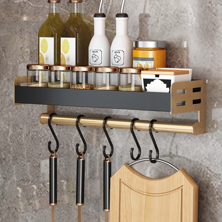 • 로드 6 후크 포함 라이트 럭셔리 블랙 골드 50 조미료 랙 (이중 사용)