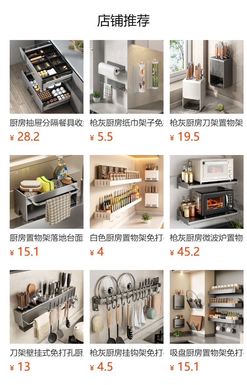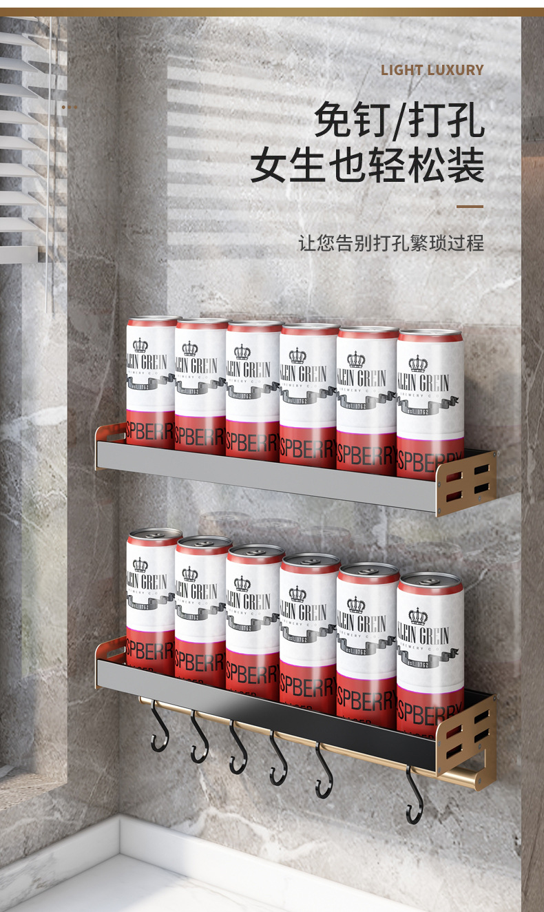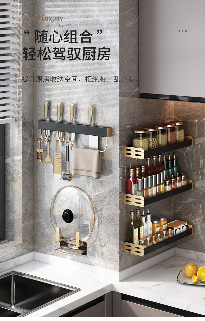 라이트 럭셔리 블랙 골드 주방 수납 랙 벽걸이 형 펀치 프리 조미료 젓가락 용품 냄비 커버 랙 나이프 홀더 보관 랙스토어 가기