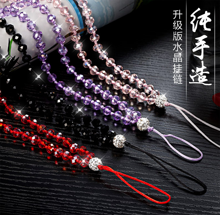 [재고 도매] 미끄럼 방지 패션 롱 47cm 크리스탈 휴대 전화 끈 반짝 플랫 비즈 매달려 목 스웨터 체인스토어 가기