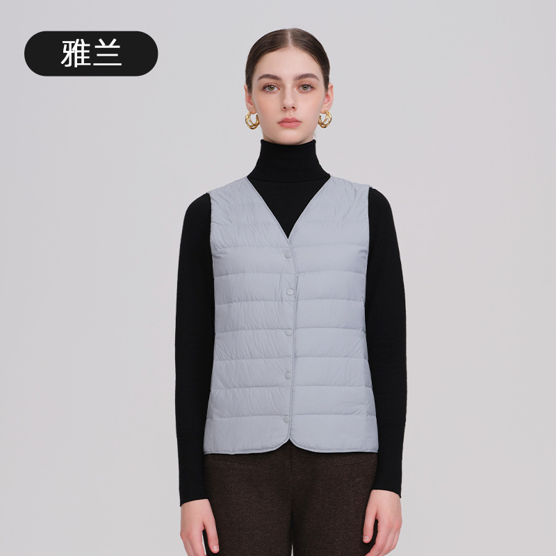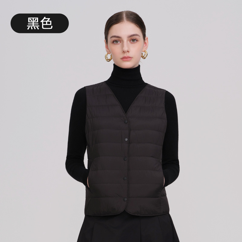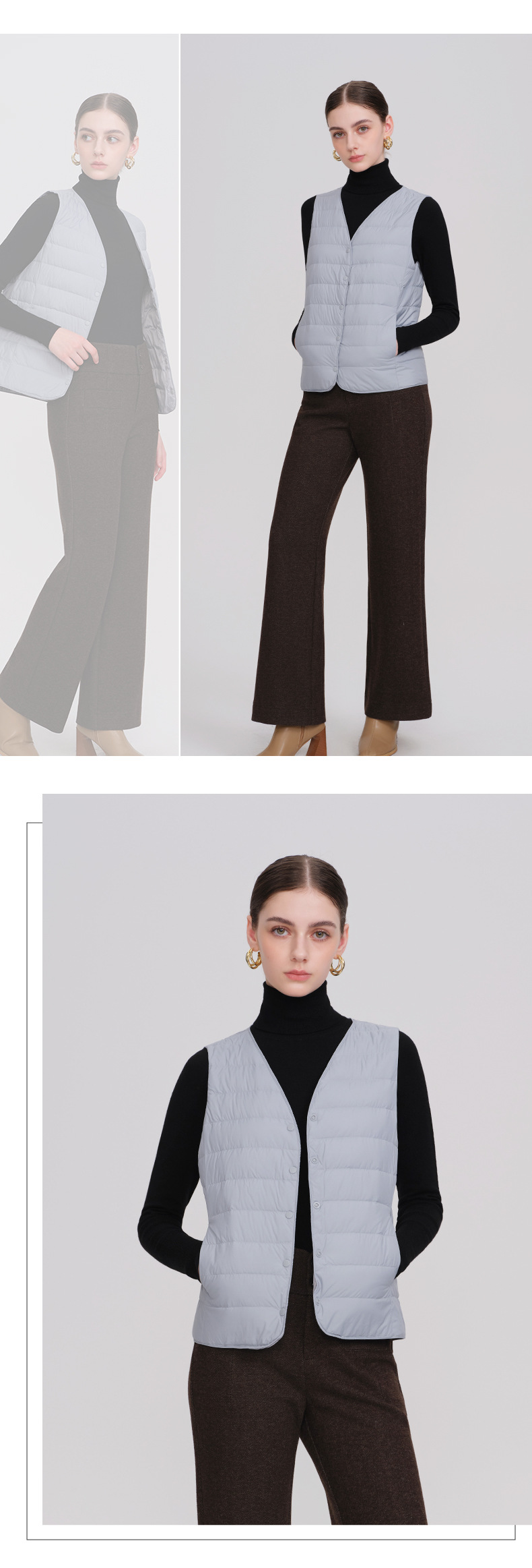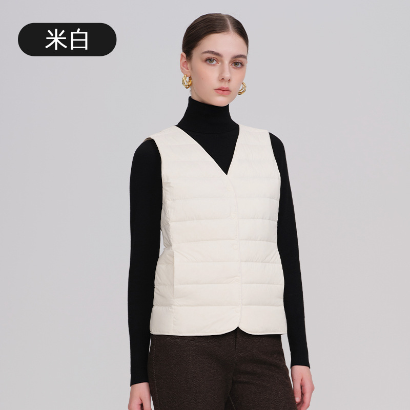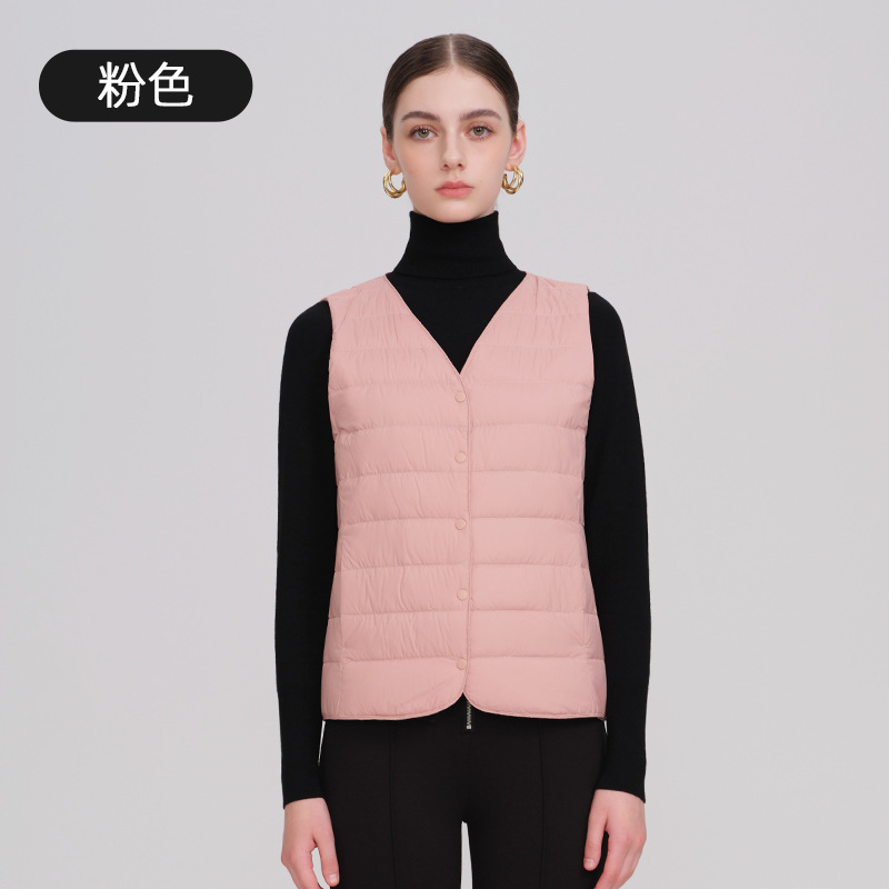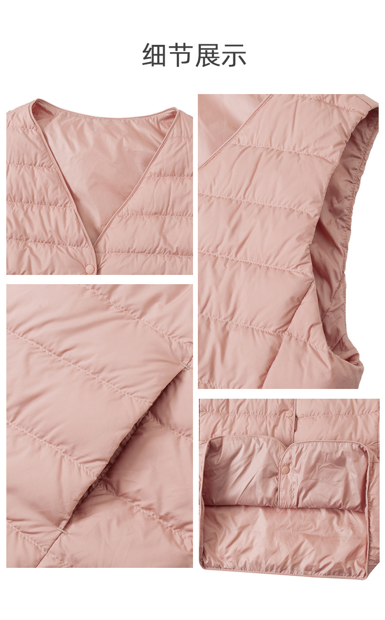 2025년 신상 여성용 다운 조끼, 칼라 없는 브이넥 경량 조끼, 여성용 슬림핏 조끼, 90% 화이트 덕다운스토어 가기