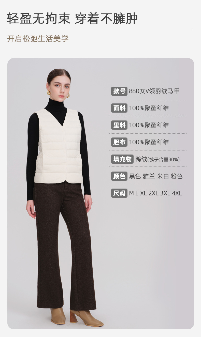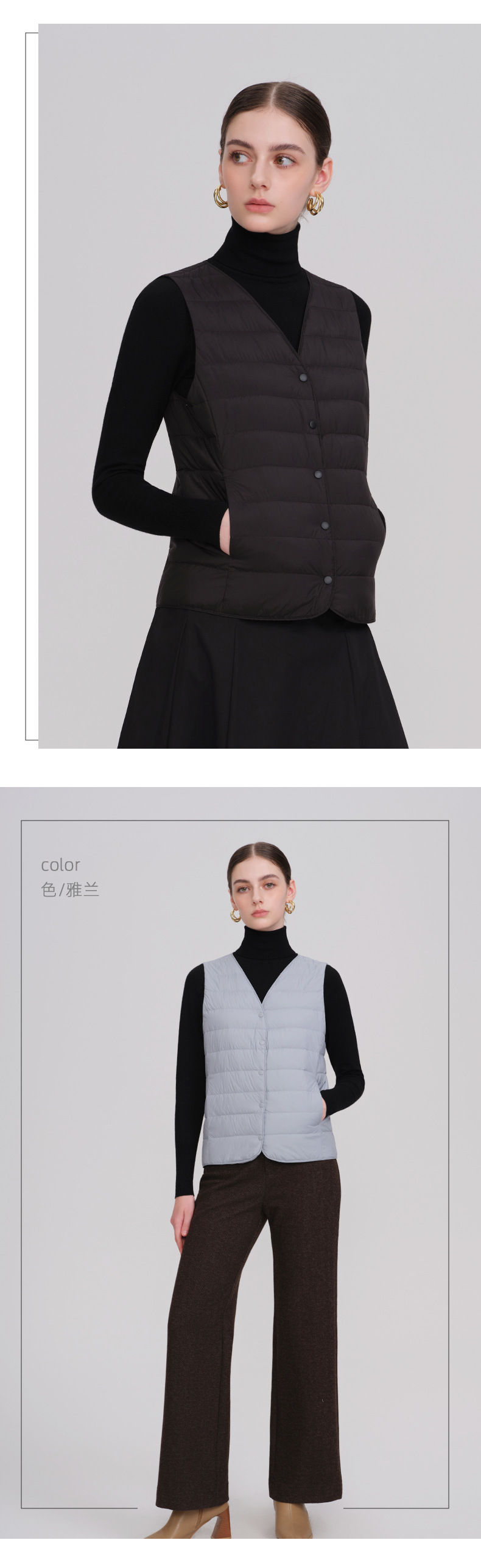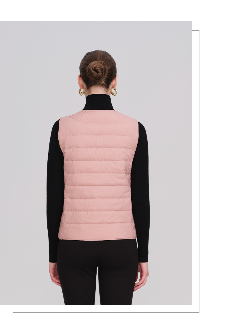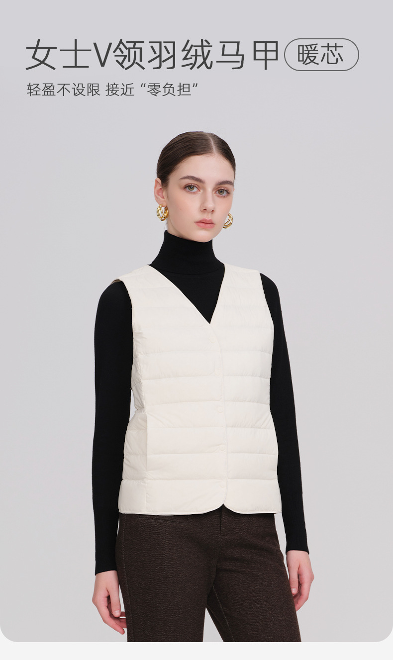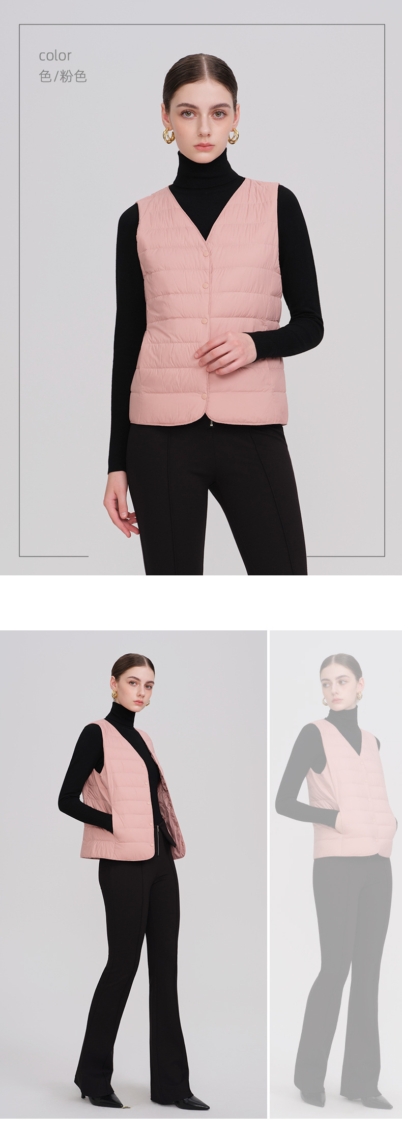 2025년 신상 여성용 다운 조끼, 칼라 없는 브이넥 경량 조끼, 여성용 슬림핏 조끼, 90% 화이트 덕다운스토어 가기