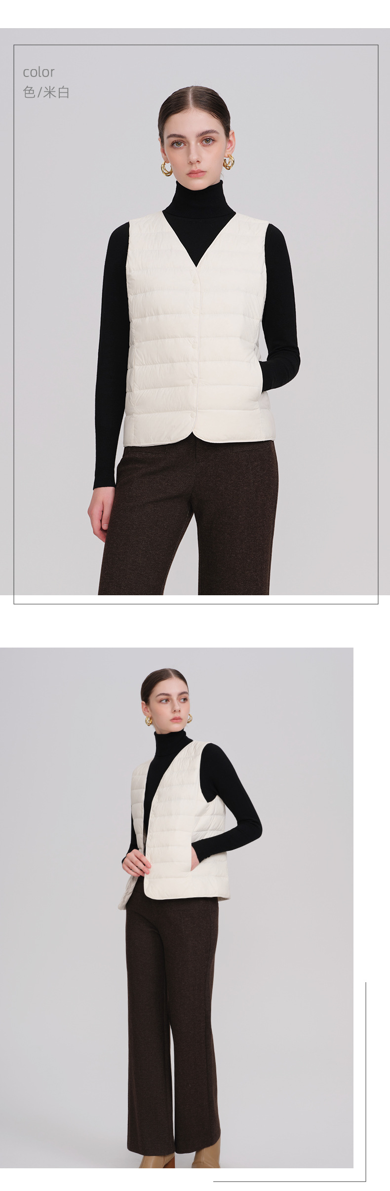 2025년 신상 여성용 다운 조끼, 칼라 없는 브이넥 경량 조끼, 여성용 슬림핏 조끼, 90% 화이트 덕다운