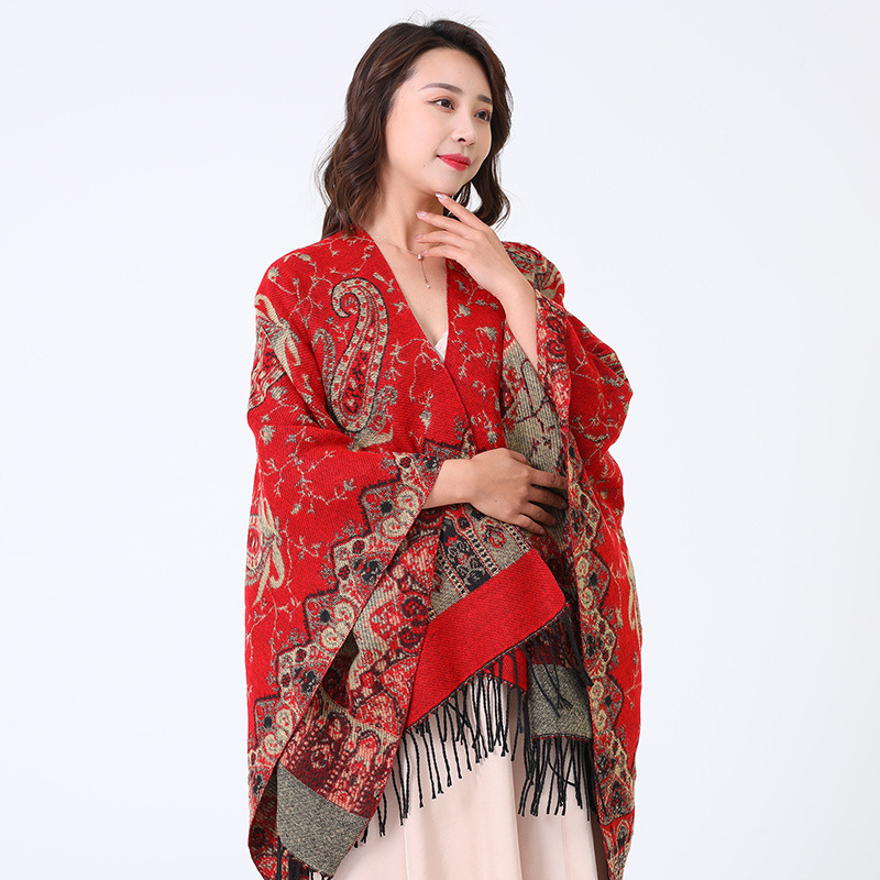 차카 솔트 레이크 칭하이 사막 레드 망토 여성용 봄과 가을 캐시미어 술 분할 스카프 숄 에어컨 룸 따뜻한스토어 가기