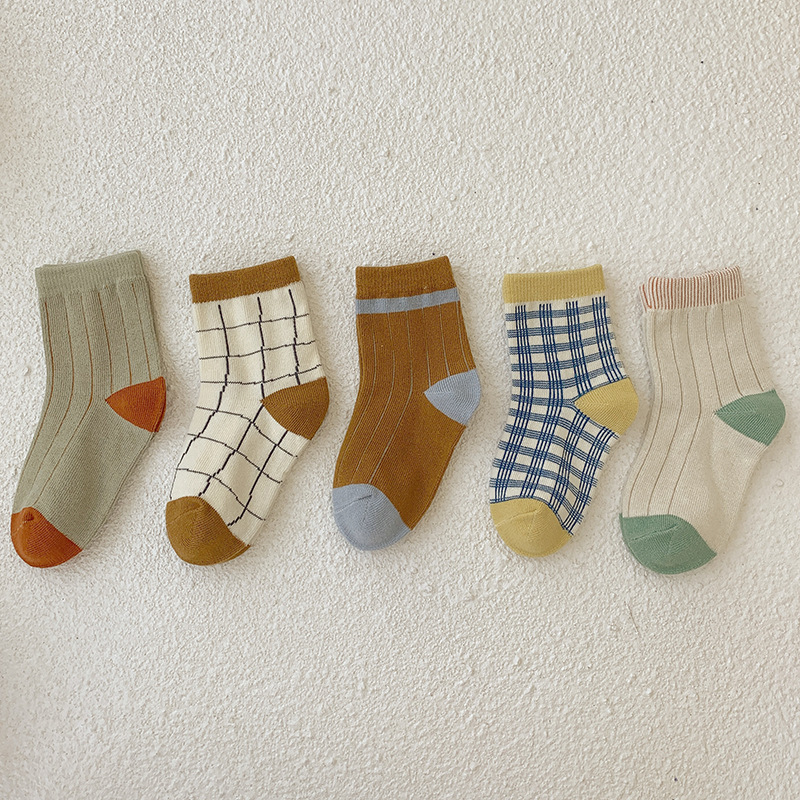 패션에 어린이 양말 소년과 소녀의 일본어 한국어 버전 사계절 튜브 양말 가을과 겨울 격자 무늬 학생 면화 양말 도매